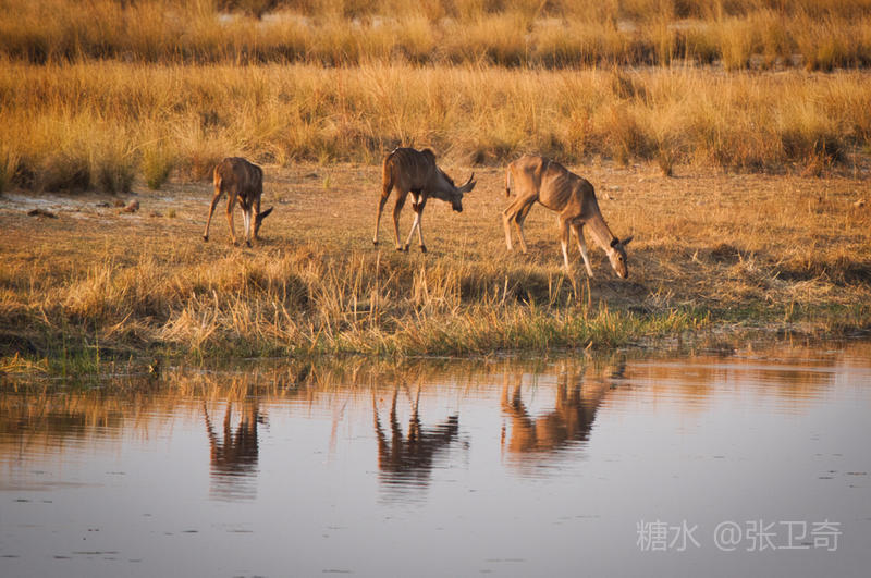 不过几头高角羚还是提高警惕,在离开鳄鱼很远的地方喝水。
