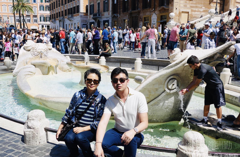 西班牙广场中心的《破舟喷泉》前游人如织。这座《破舟喷泉》是贝尼尼父亲的杰作,创意来自一次大决堤,一条破船被河水冲到此地。