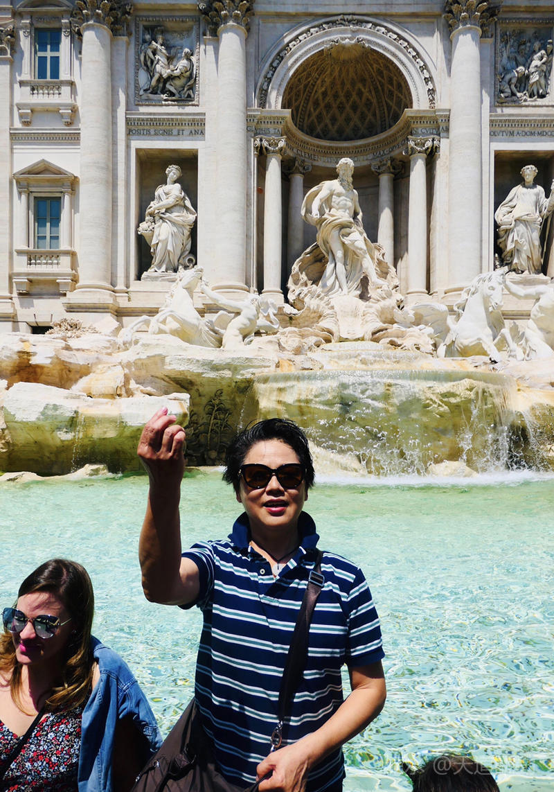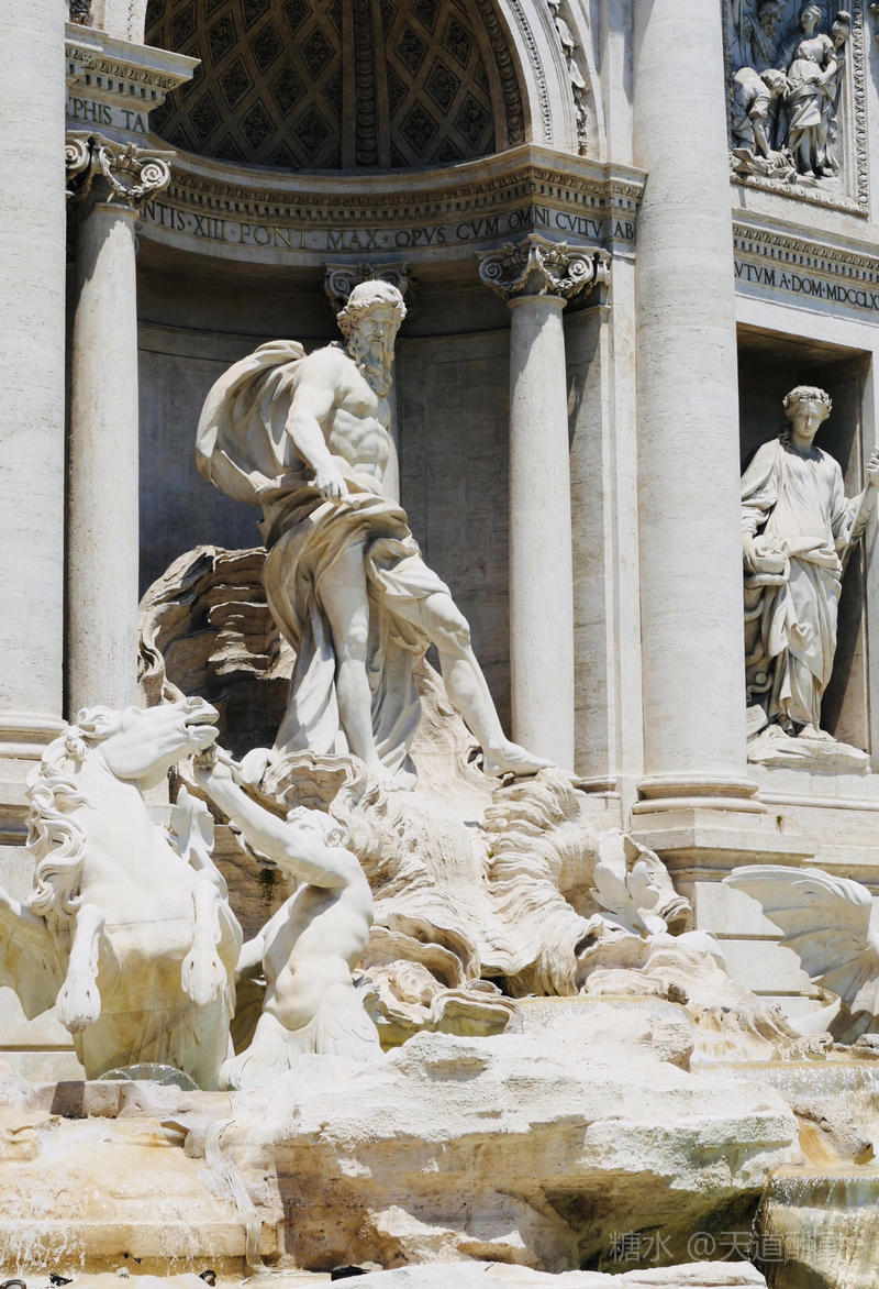 许愿池的大理石海神雕像栩栩如生,海马们拉着硕大的贝壳精美绝伦,一泓清澈的池水吸引了来自世界各地的游客,池底铺满了五花八门的各国硬币。