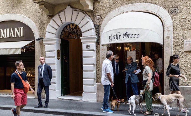 西班牙广场台阶正对着的一条街道是著名的商业街——孔多蒂街,罗马最古老的咖啡馆(Cafe Greco)就坐落于此。咖啡馆与1760年开业,世界各地艺术家如司汤达、易卜生、肖邦、李斯特、比才、歌德、雪莱、济慈等都曾在此聚集。咖啡馆内的装修精致古典,墙上挂着几百年来的艺术藏品。