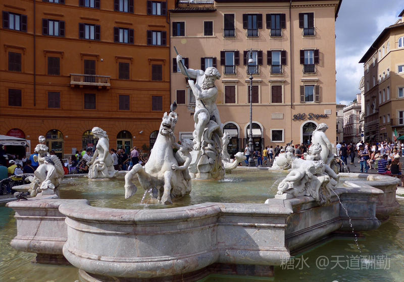 海神喷泉,它是纳沃纳广场上的一个重要的喷泉。雕塑非常的精美,展现的是一副非常具有动感和人物肌肉线条美感的海王与章鱼决斗的场面。