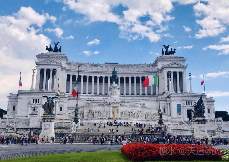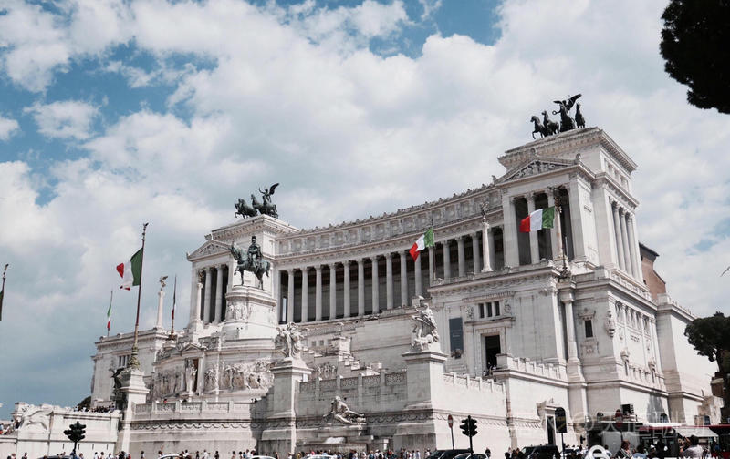 埃曼纽尔二世纪念堂,一个形状酷似“结婚蛋糕”、“打字机”的白色大理石建造的新古典主义建筑。这座为了庆祝1870年意大利统一而建造的纪念堂,耗时25年才建成,16根圆柱形成的弧形立面是它最精彩的部分。