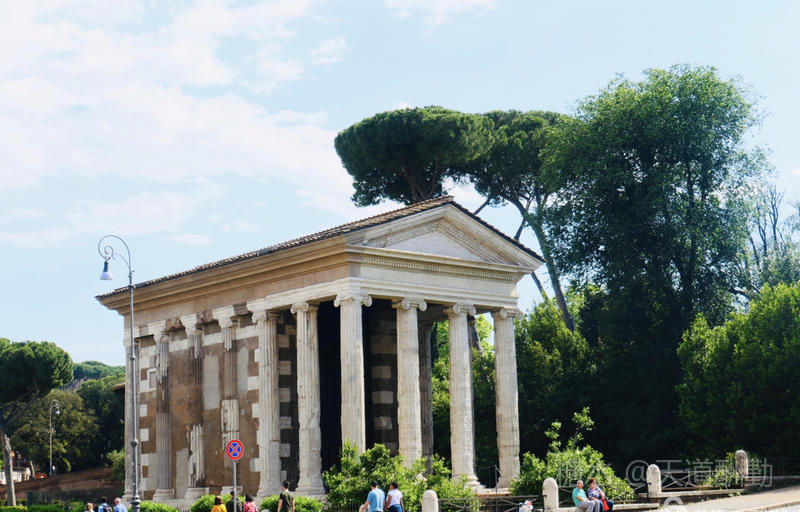 河港之神波图努斯神庙,这座神庙原为埃特鲁斯坎人于公元前75年所建。屋大维称帝后,大兴土木,用一层新的石灰华大理石贴面更新了它,它和圆形海克利斯神庙是罗马为数不多的完整的公共建筑遗存。