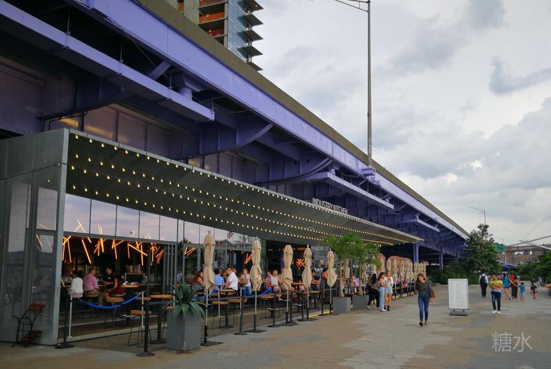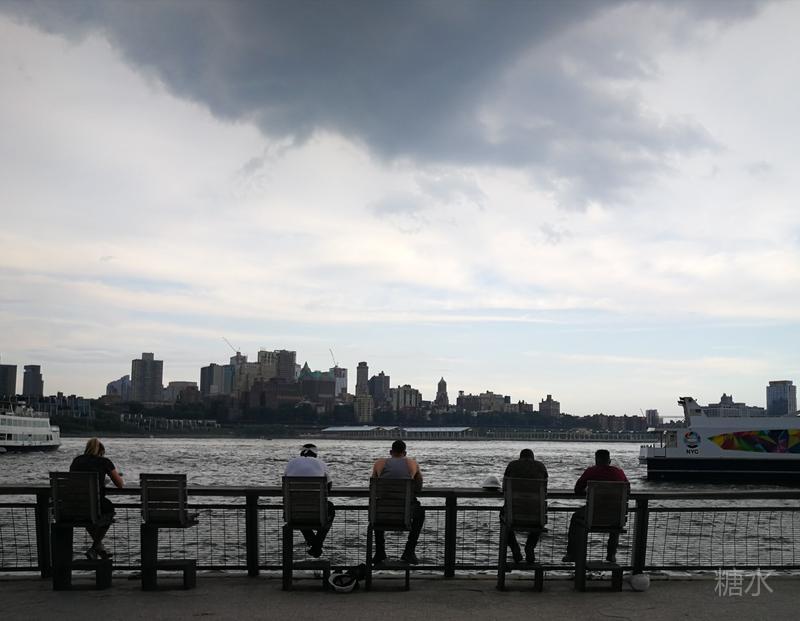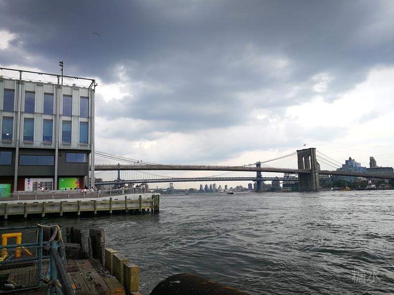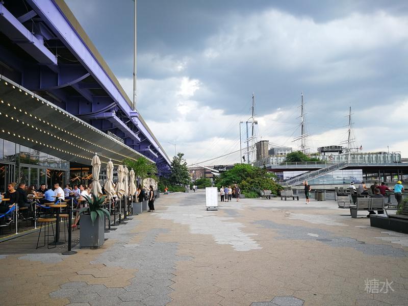 离开世贸公园,穿过华尔街到南街海边吹吹海风,高架下的工业厨房外满是喝酒聊天的白领;靠海的栏杆处,几个穿着工装的工人正遥望对面的布鲁克林高地。