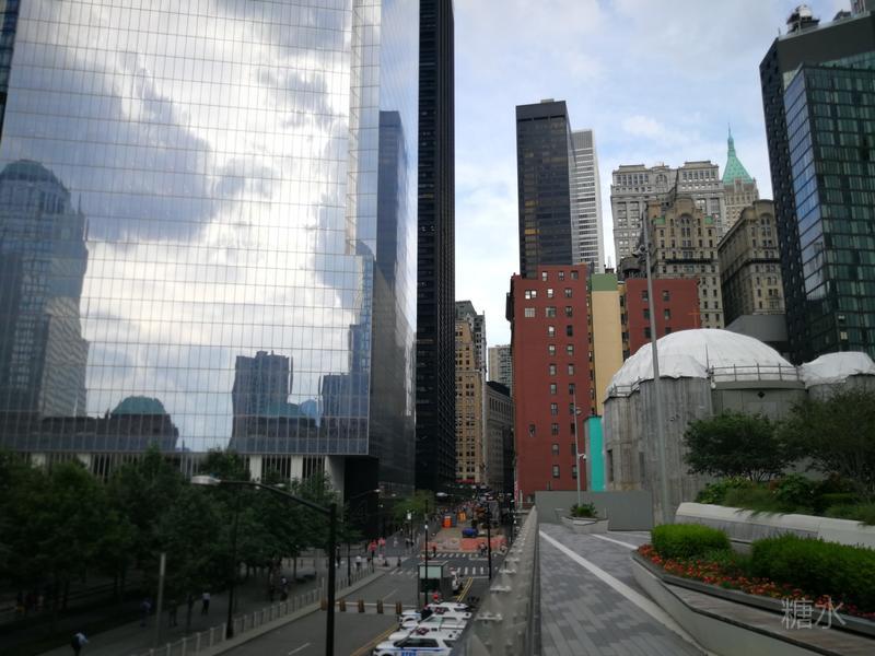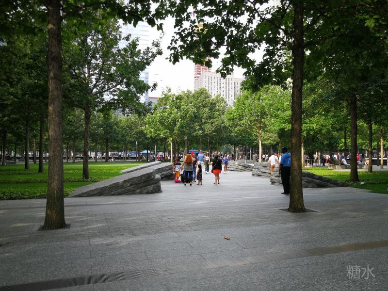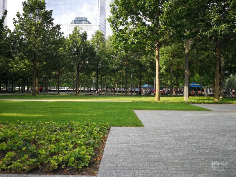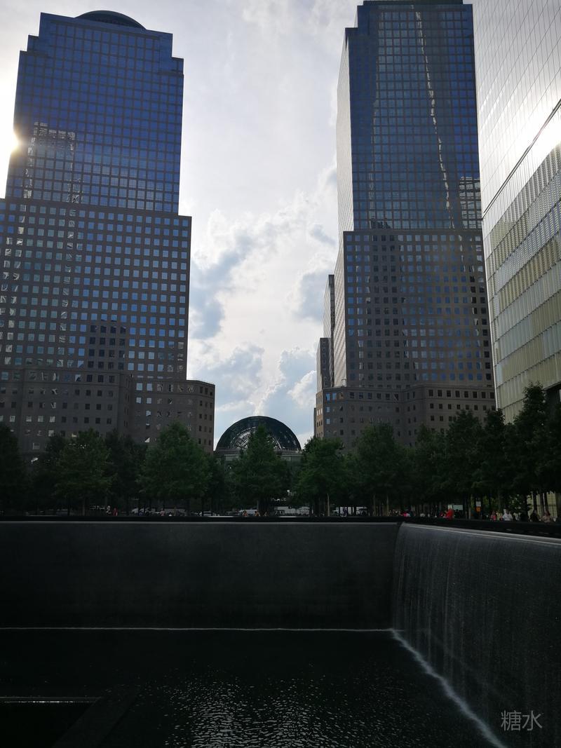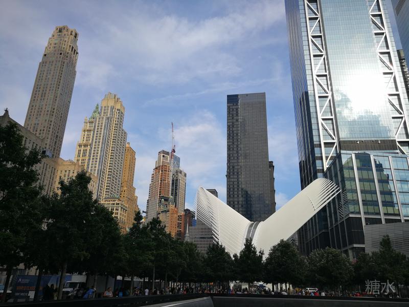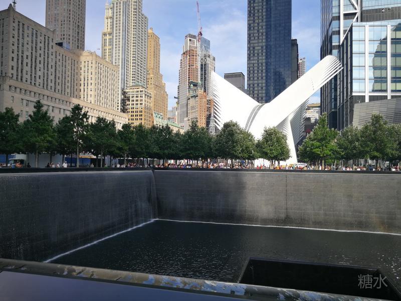 那次也去了世贸遗址公园,双子楼的地基改建成911深坑纪念水池,新的世贸1#楼矗立高耸,阳光下反射的玻璃幕墙特别刺眼。但周边都是围起的护栏与黑色的布幔,警察或者是协警在路口指挥着交通,这里还是一个大工地。