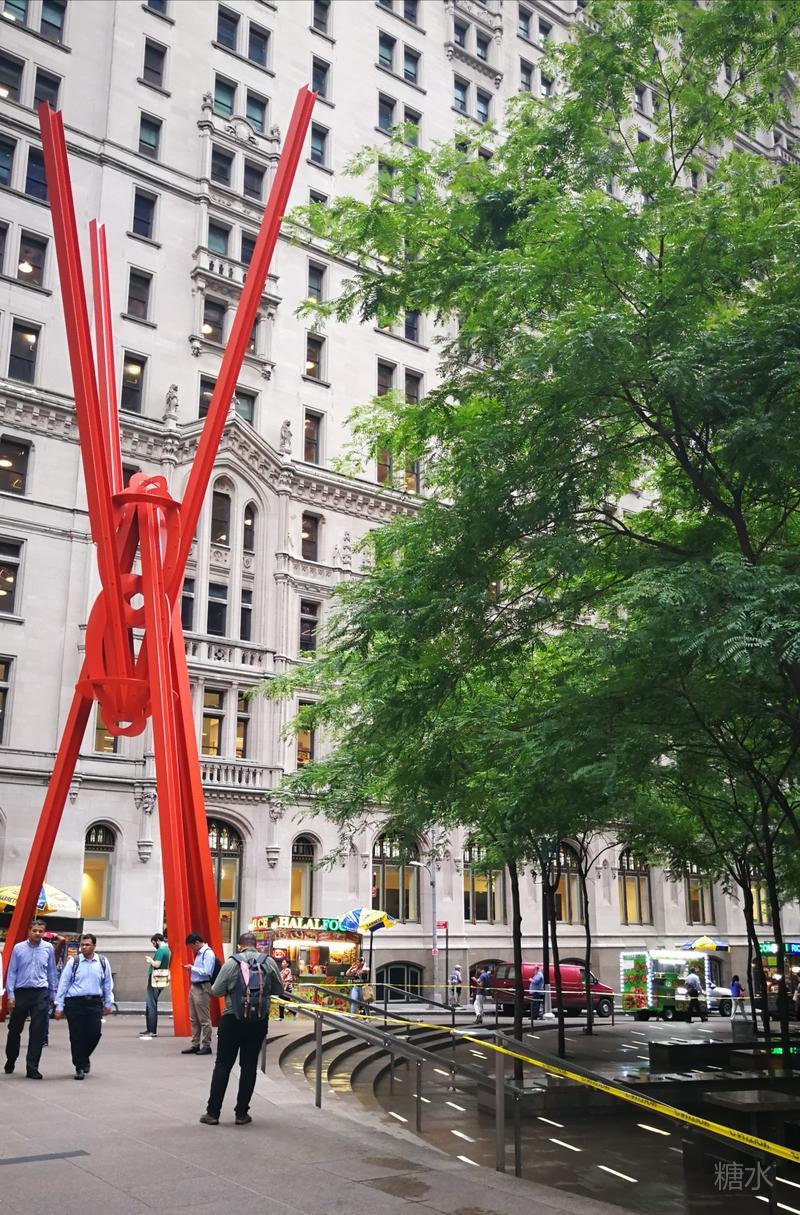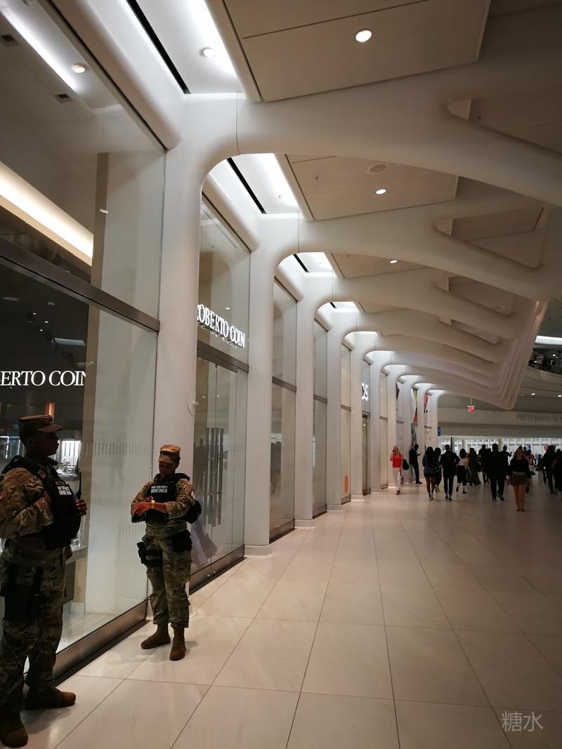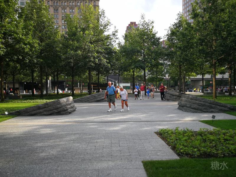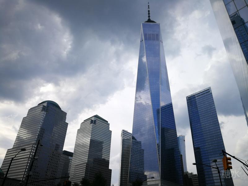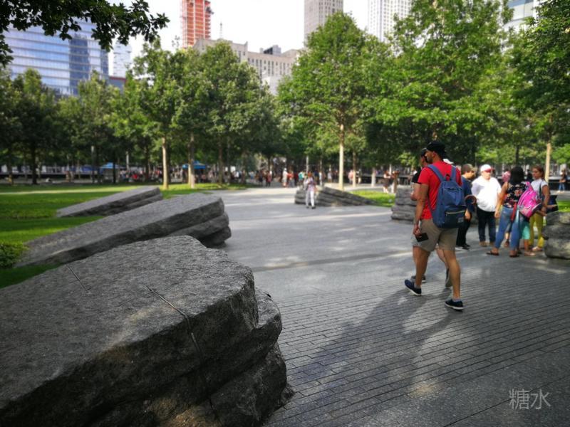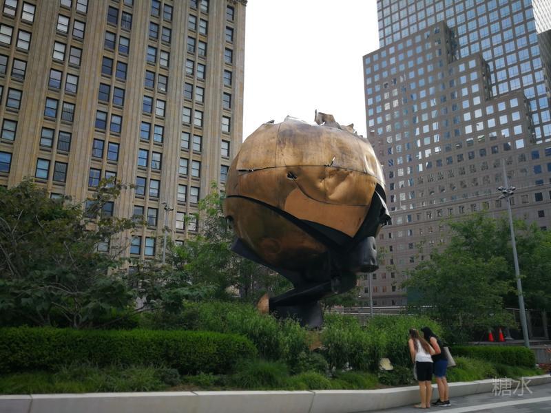 那次也去了世贸遗址公园,双子楼的地基改建成911深坑纪念水池,新的世贸1#楼矗立高耸,阳光下反射的玻璃幕墙特别刺眼。但周边都是围起的护栏与黑色的布幔,警察或者是协警在路口指挥着交通,这里还是一个大工地。