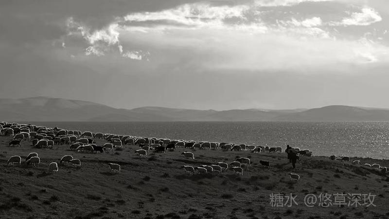 金色的阳光透过山峦,仿佛一幅油画,成群的羊群镶嵌在广柔的草原上,马儿欢快的奔跑着,牛儿悠然的吃着地上的青草,牧民唱着悠扬的藏歌,天堂般的画卷!