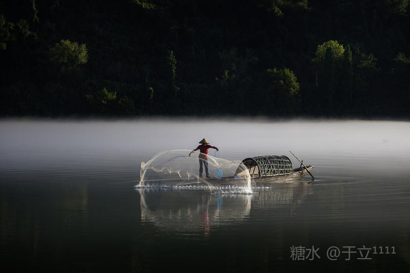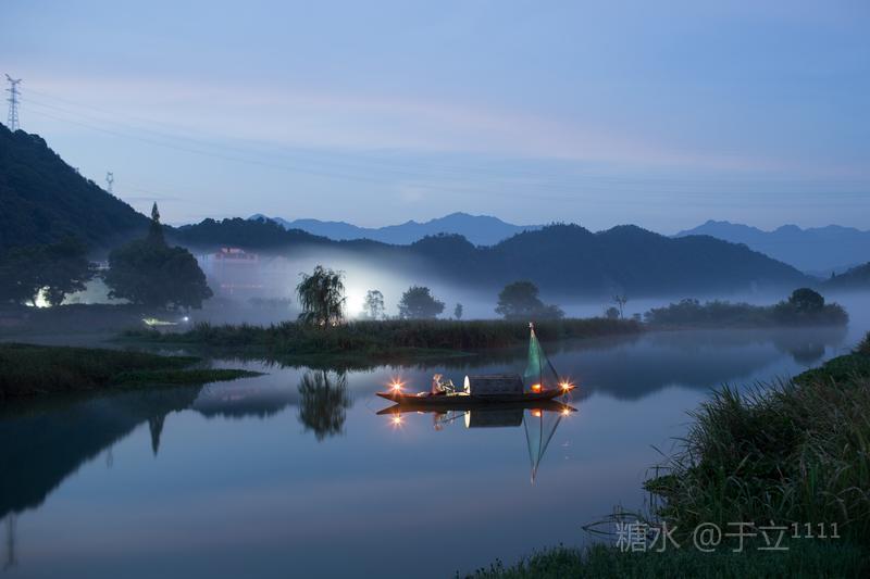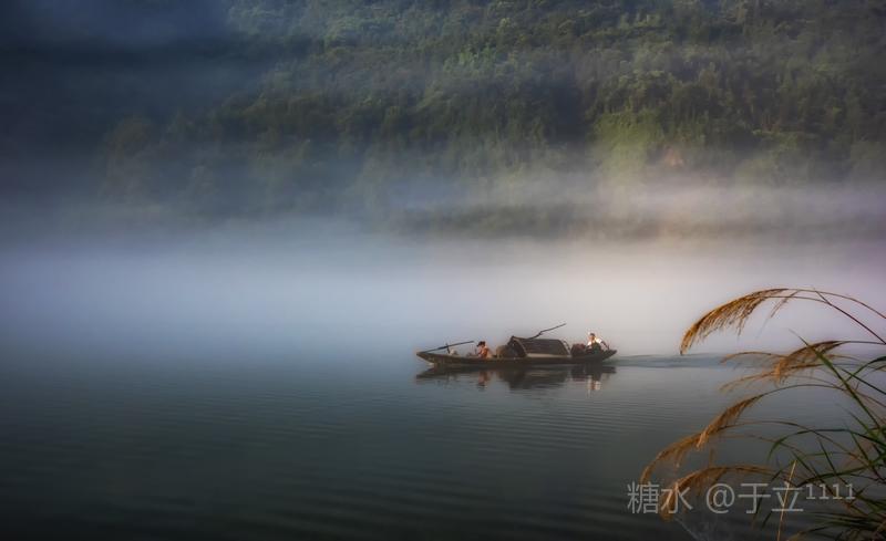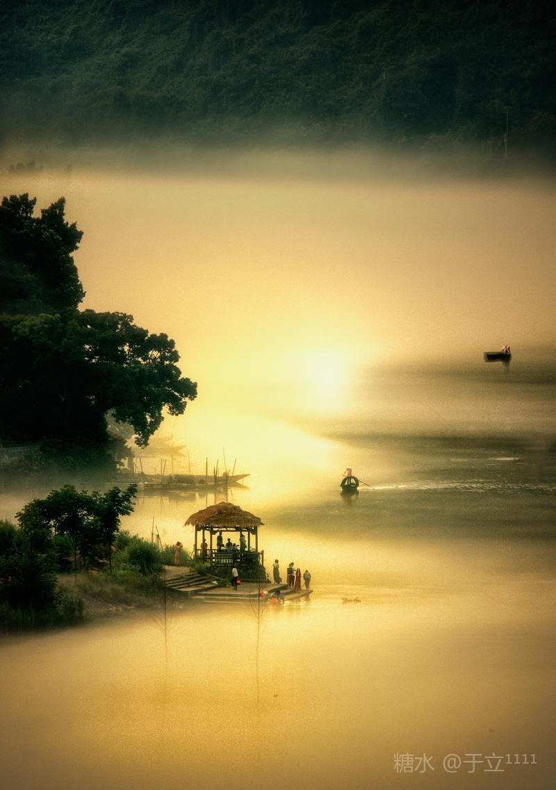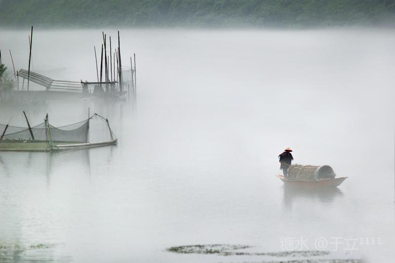 【雾舟】 黄饶津渡雾中船, 时隐时显尽缠绵。 一网撒落满天星, 一叶渔舟爱唱晚。