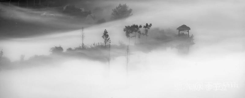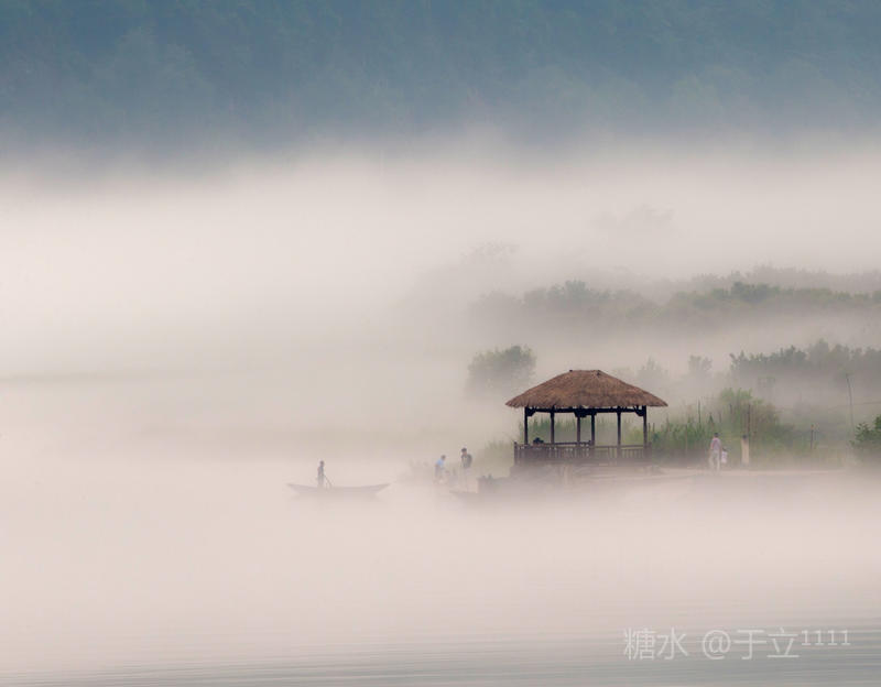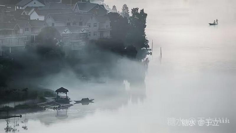 【雾江】 雾锁之江隐翠峦, 墨染水乡留余白。 鸟鸣其间绕清音, 人间仙境细徘徊。