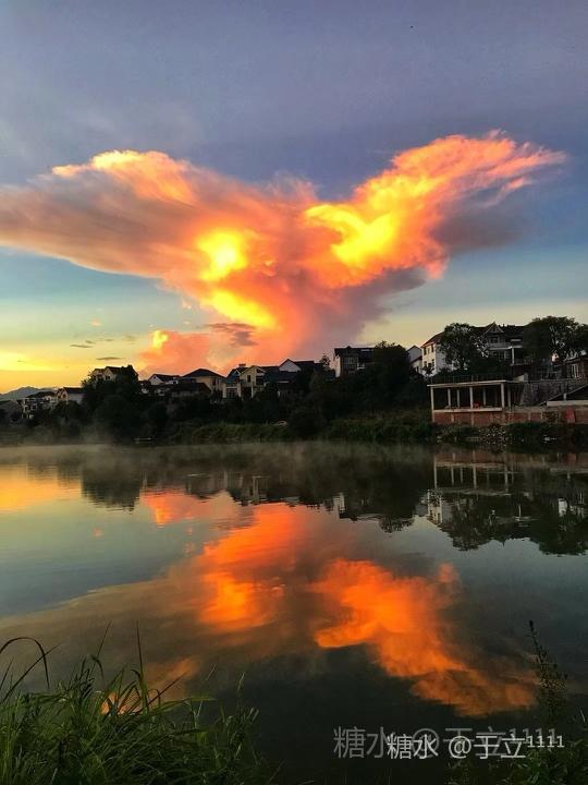 【红云奇雾】 夕照朝阳满天霞, 梦幻仙境在下涯。 红云融入奇雾中, 对岸隐约见我家。