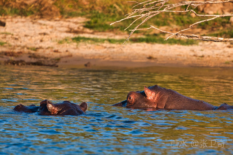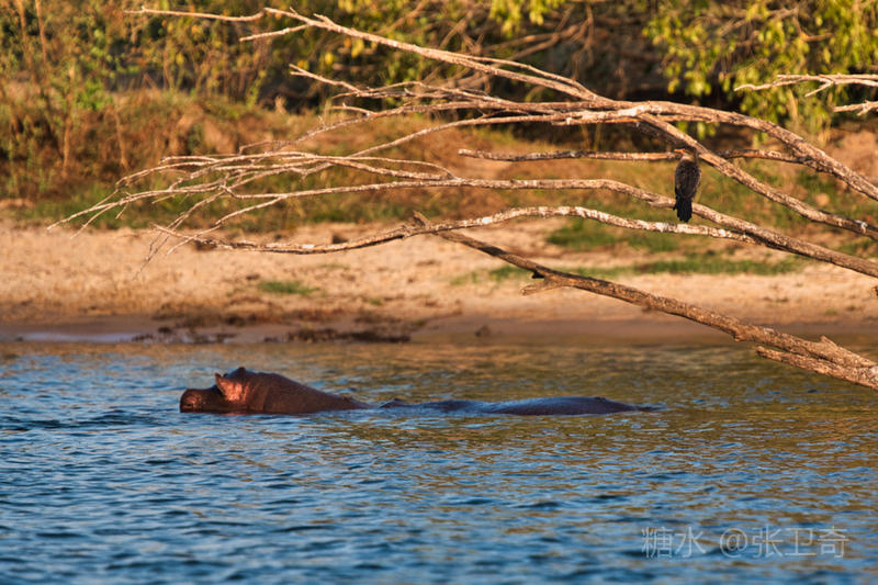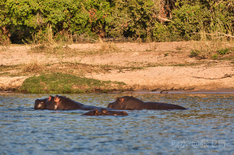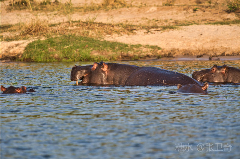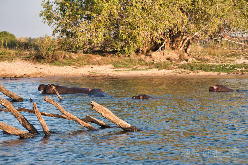 赞比西河以“河马之家”闻名,河马是这里当仁不让的“霸主”。谁也说不清河里到底繁衍了多少河马,按当地人的说法是:每一平方米的水域就有一头。
