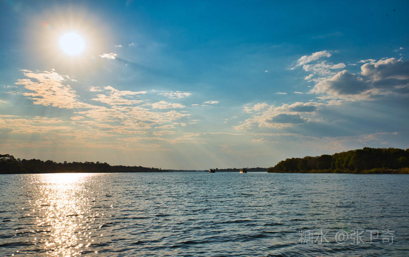 我们坐上游船,慢慢地开进在宽阔的赞比西河上。