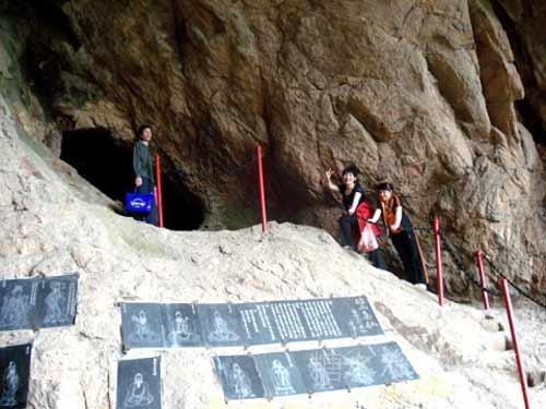 石门刻着醒目对联: 横批:奇洞险峰 上联:八十一峰称雄 下联:七十二洞藏幽