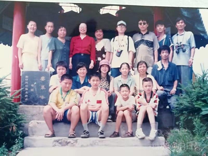这是二十年前暑假学校老师游拉法山时的照片,感谢李丽老师还一直保存并发给我,除我之外的老师我都能立刻叫出姓名来,只有那位穿红衬衫的我没认出来,噢!我对自己的面貌不熟悉啊!两天后我才认出是自己,真好笑! 攀登顶峰的是少部分老师,大部分老师都在半山腰穿心洞休息待命呢!