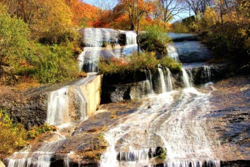 (六) 天然山水画 美妙绝伦山水画, 丹青墨染靓奇葩。 谁挥妙笔抒豪卷? 四季分明绘锦花。