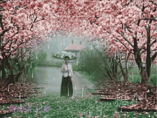 浅浅的笑,不是心情,而是心境, 诸多无奈诸多忧伤, 沉寂如雨,默默滴落; 淡淡的心,不是沉醉,而是沧桑, 诸多喧嚣诸多纷扰, 化为这风,这雨,这世界。 繁花携雨匝满地,留在心上的是: 那季节,那脚步,那心 ……