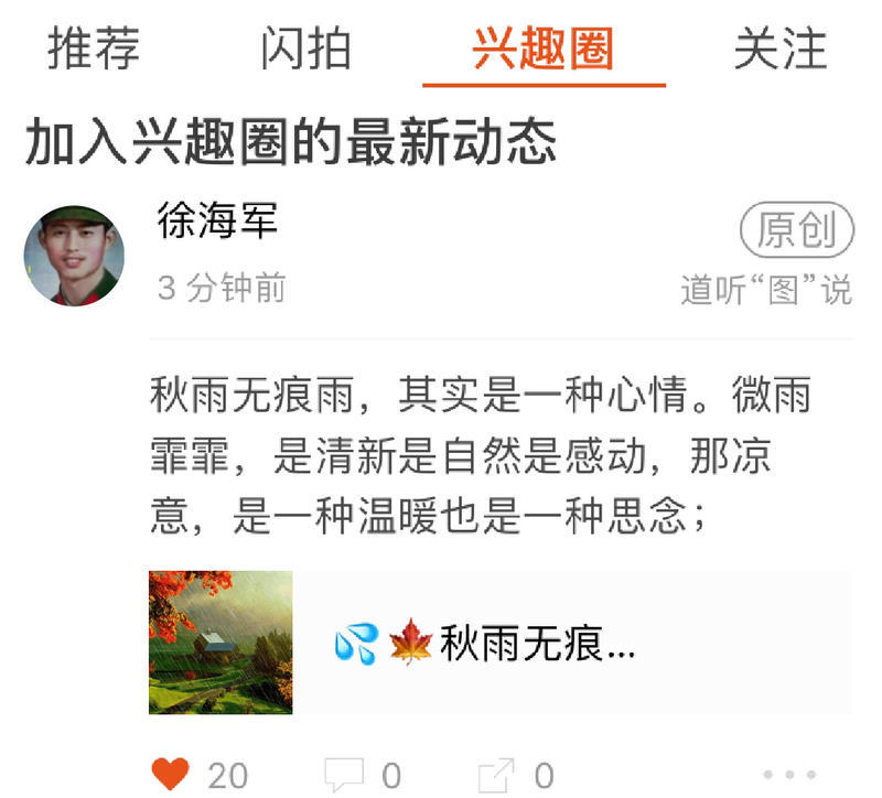 💦🍁秋雨无痕🍂🌼💦恭喜,你的作品《💦🍁秋雨无痕🍂🌼💦》入选《道听“图”说》兴趣圈