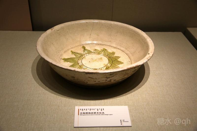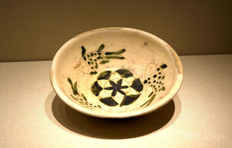 馆藏,辽白釉绿彩三鱼纹洗