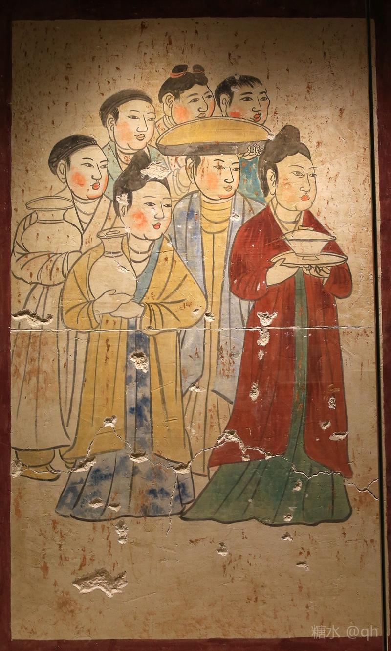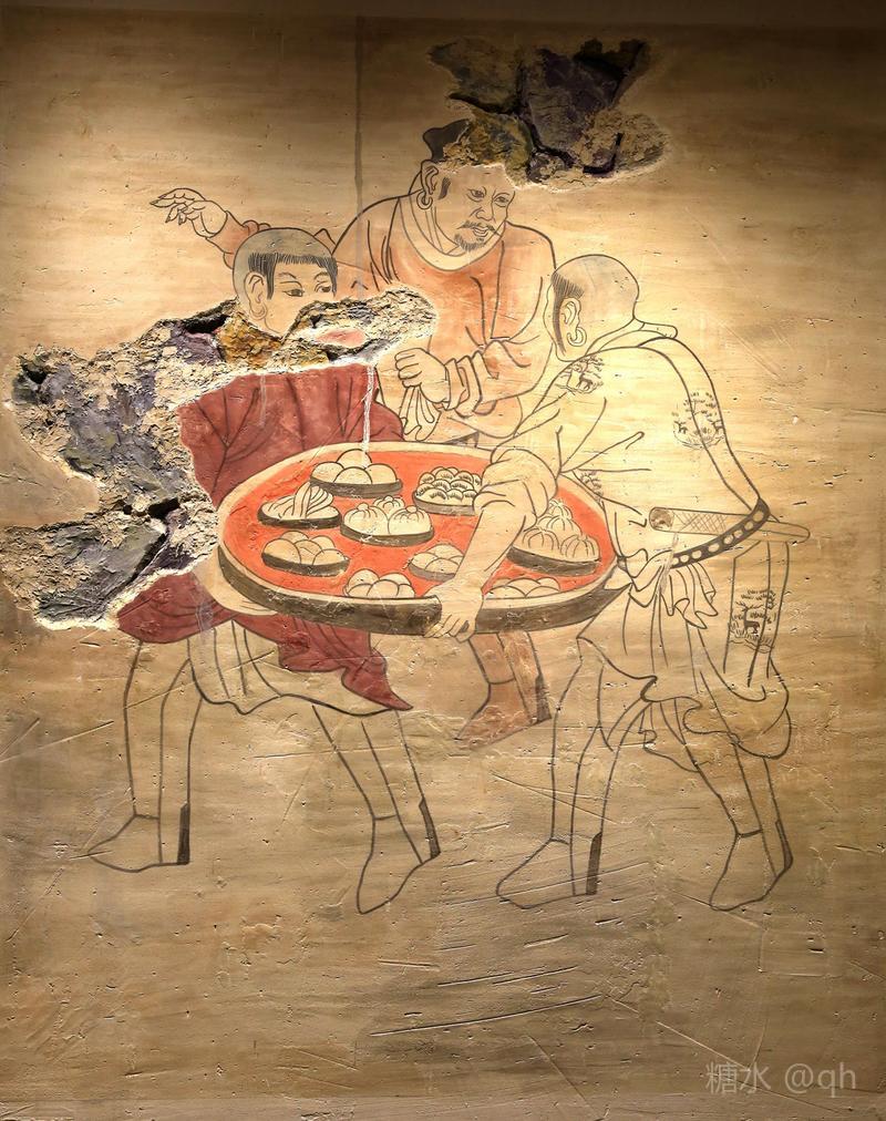 辽墓壁画:备食图。契丹人当时伙食不错,馒头,包子,花卷儿。除面食外,辽代粒食法还有很多,有水饭,干饭,粥饭,炒米等。