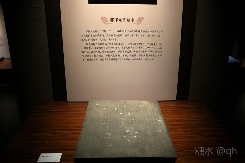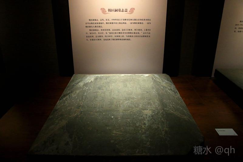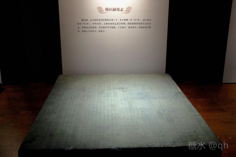 辽上京博物馆辽代遗存丰富,走进博物馆,一件件藏品映入眼帘,大辽特色展现的淋漓尽致,仿佛走进了那个辉煌的朝代! 辽上京博物馆是我国唯一以辽文化为主题的博物馆,壁画和墓志是其特色。在馆藏的20多方墓志中,韩氏家族墓志就有13方,其中韩匡嗣墓志就是馆藏精品之一。该墓志志石为青砂岩质,方形,边长122厘米,志文楷书,凡1551字。韩匡嗣墓志字数多,内容丰富,它的出土大大补充了《辽史·韩匡嗣传》的内容,同时也纠正了《辽史》编修中的一些舛识,对研究辽代的政治、军事、民族问题有很大价值。