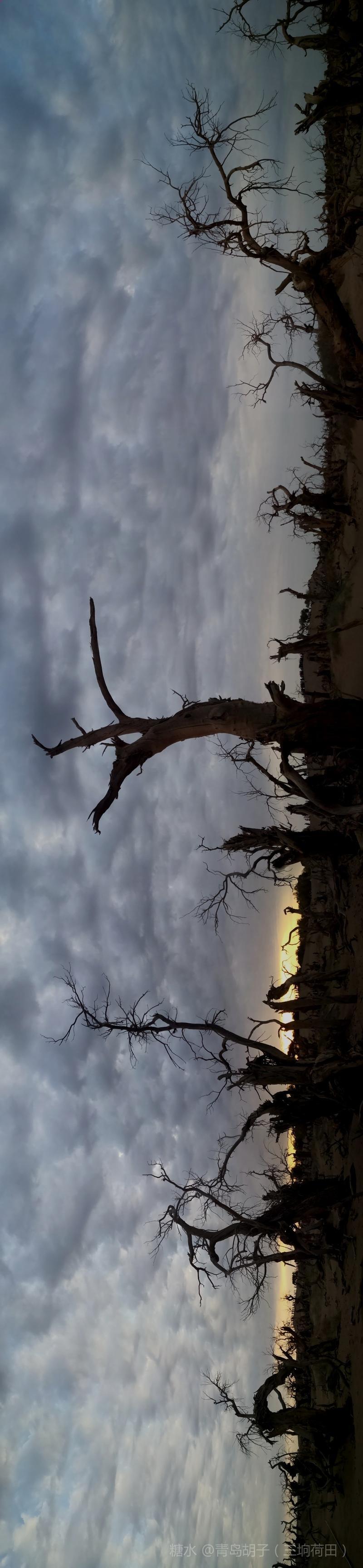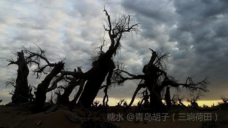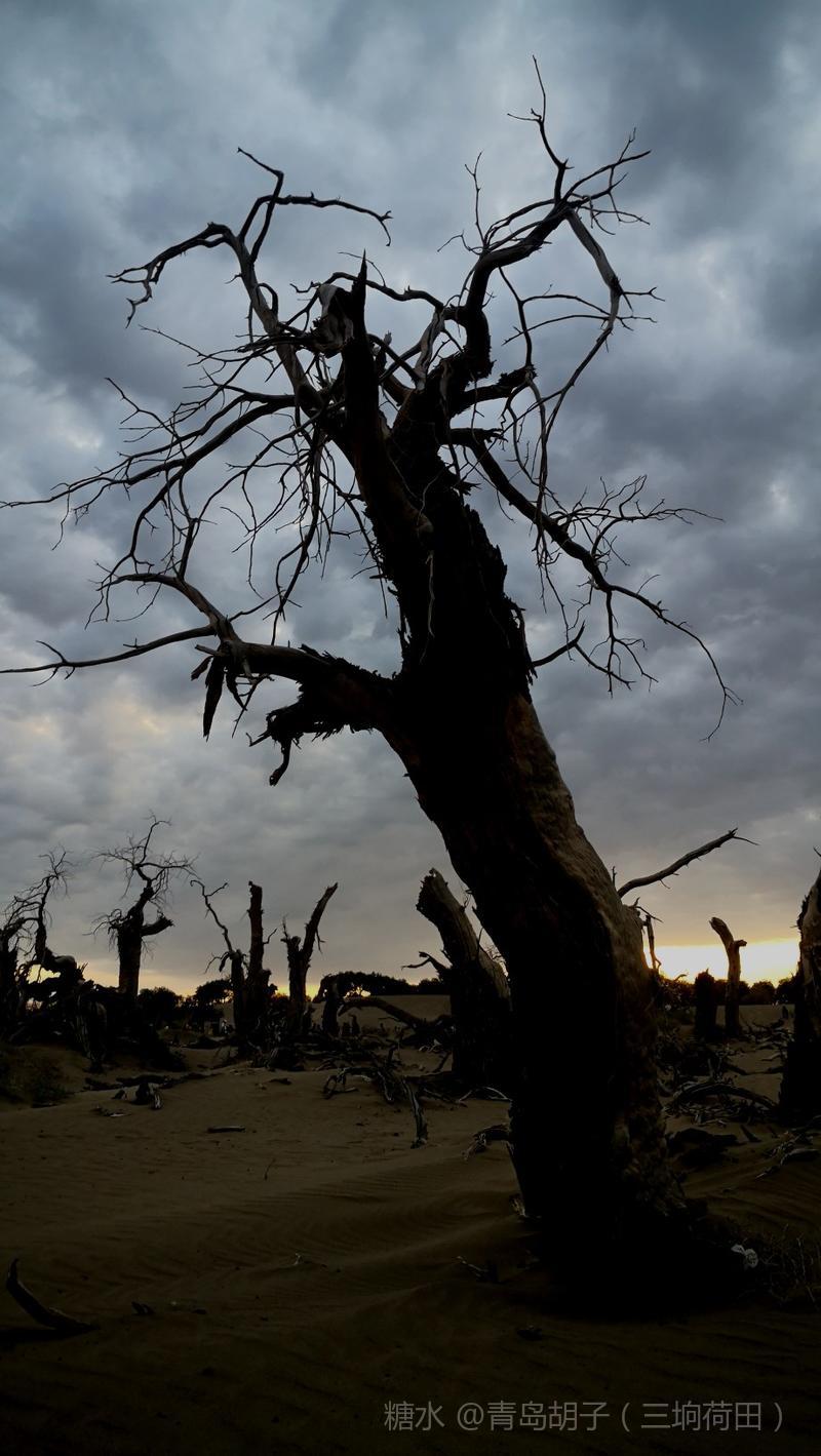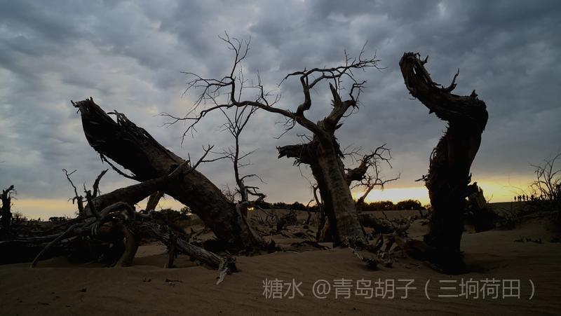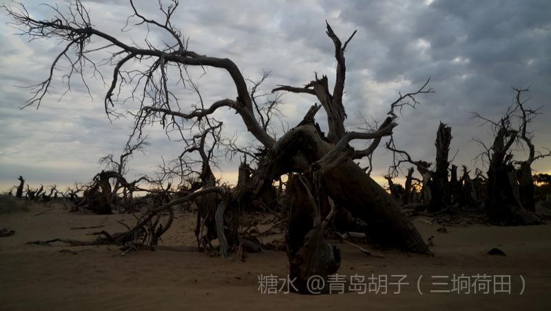 黑城弱水胡杨林景区,有一大片怪树林,是几千年前死去胡杨的“墓地”。我在景区近一个月,来这里十九次。内蒙天气干旱,风大,几乎天天晴空万里。今天,天空多云,黄昏时,拍了这组照片。