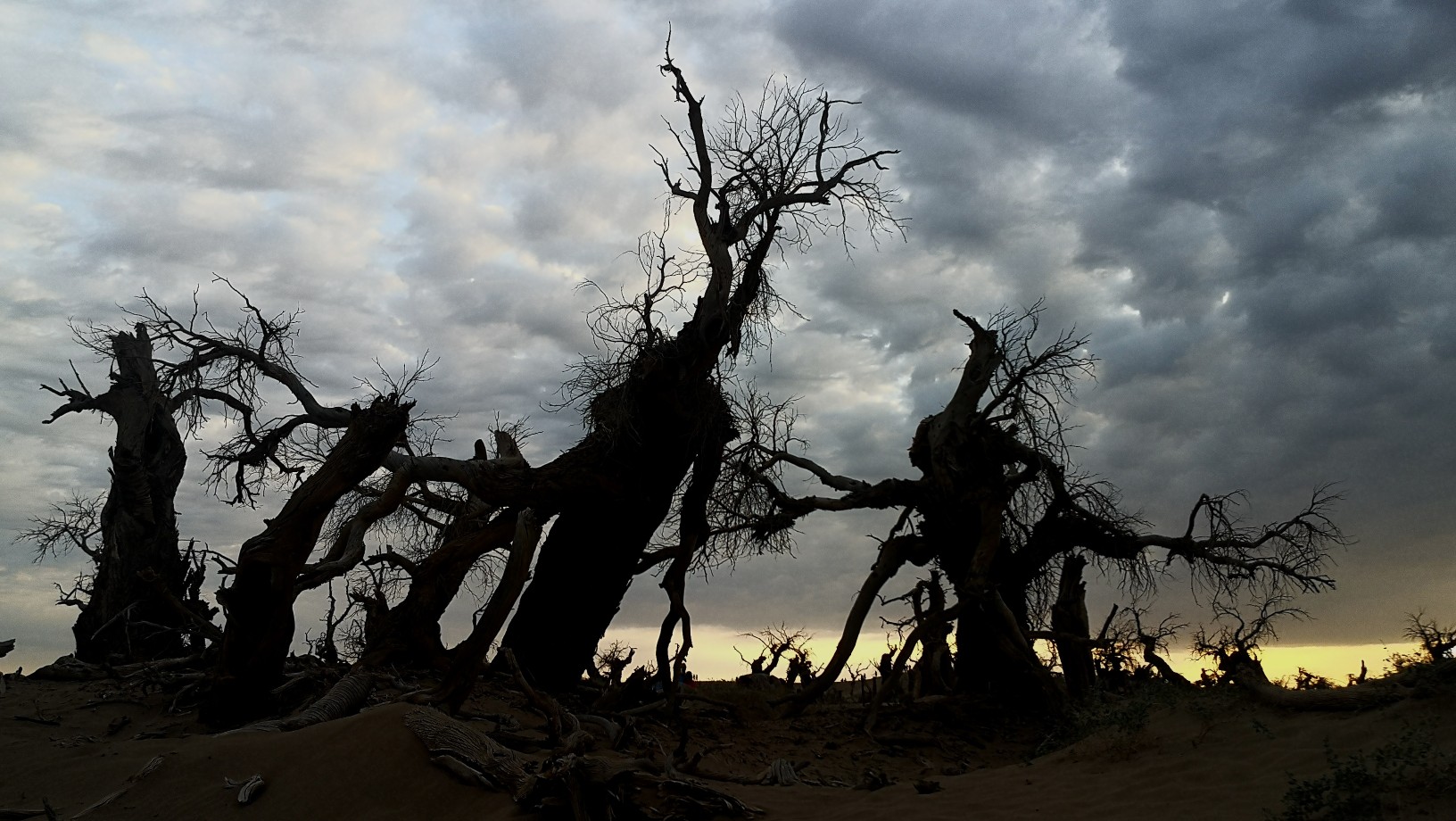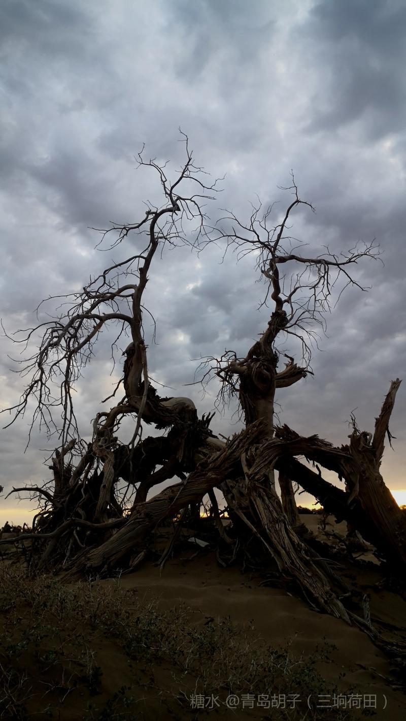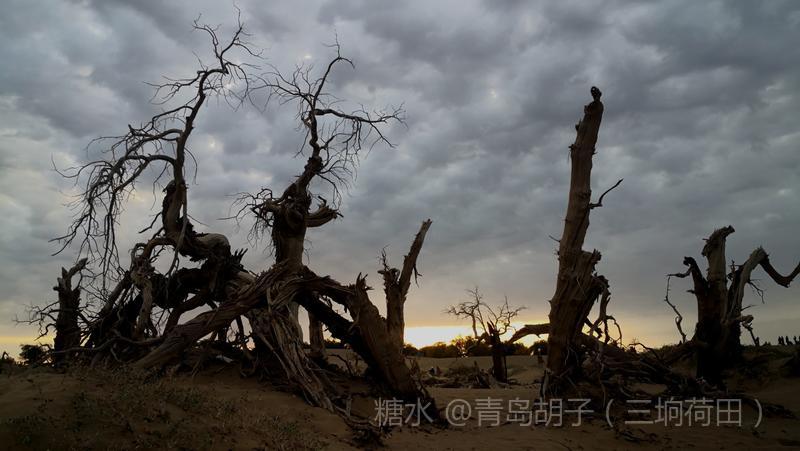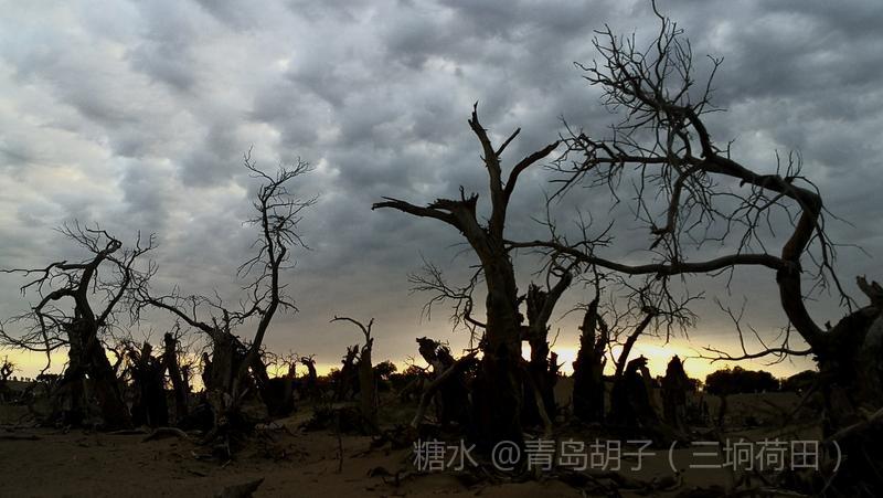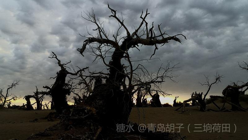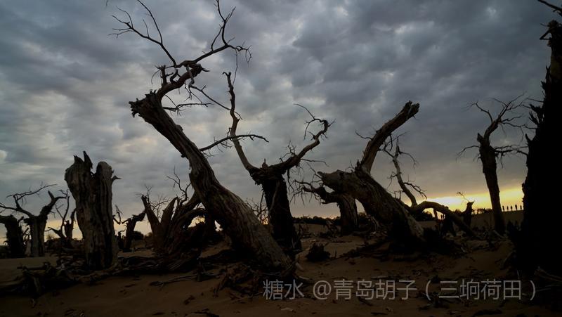 黑城弱水胡杨林景区,有一大片怪树林,是几千年前死去胡杨的“墓地”。我在景区近一个月,来这里十九次。内蒙天气干旱,风大,几乎天天晴空万里。今天,天空多云,黄昏时,拍了这组照片。