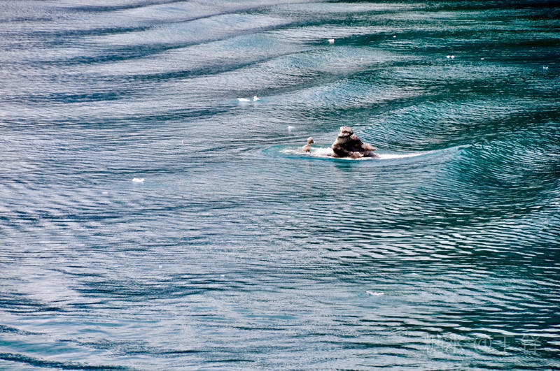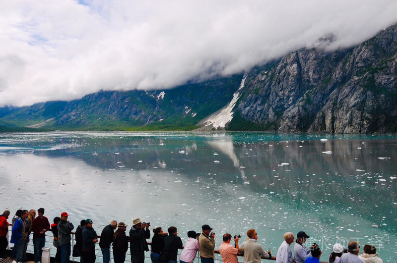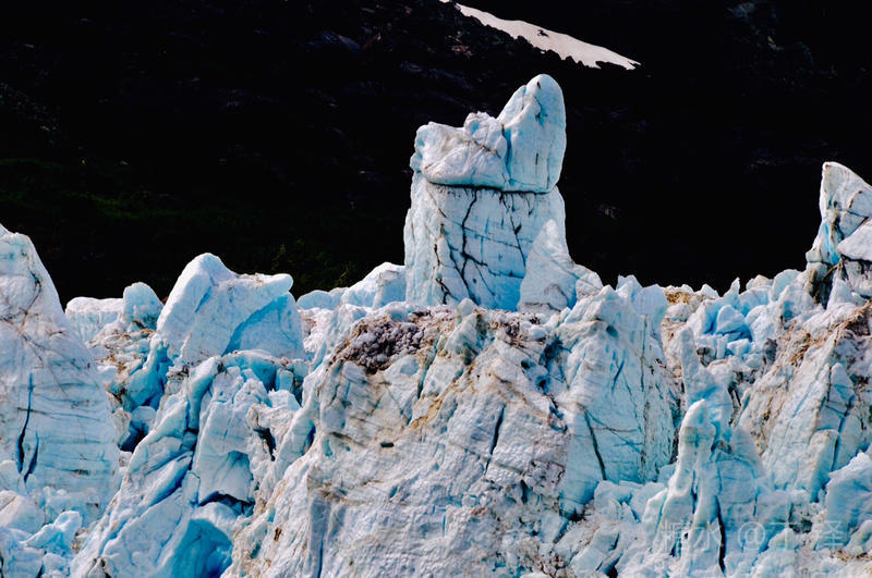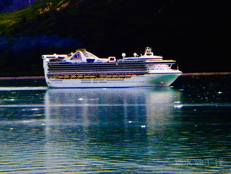 我们的邮轮主要是观看的是马杰瑞冰河和约翰·霍普金斯冰河。这两个冰河被称为“到海冰河”,冰河经长期的堆挤,直接顷泄入海。