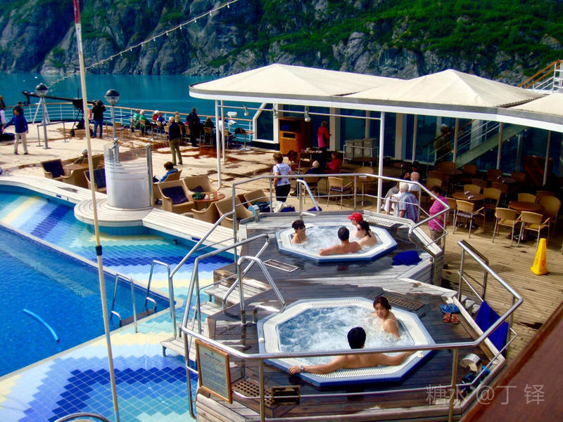 在邮轮上的泡泡温泉上欣赏周边的冰川,也是很浪漫的事。