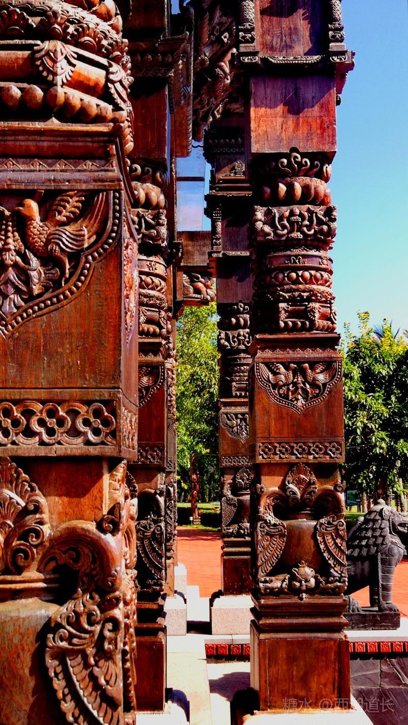 三亚的南山景区 有一座据说是 全世界最大的观音立像 这是秀美南山的焦点 山海相依的南山景区 很多景观景色很是迷人 其中天竺圣迹佛陀馆 非常值得去走走看看 这组尼泊尔式建筑 其前身为 上海世博会尼泊尔馆 这座由350户尼泊尔 能工巧匠打造的宫殿 其搬家过程历时两年 在原始结构的基础上 进行二次设计创新 其整体规模 为原馆的两倍 不赶巧的是 内部整修没有开馆 很赶巧的是 它给我留了一个侧门 简单地立了个隔离栏 拦得住人 但拦不住我的好奇心