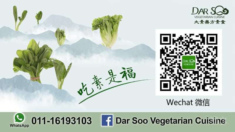 大素無方素食餐厅 DARSOO VEGETARIAN CUISINE ☎️WhatsApp:011-16193103 Tel: 03-27800130 Facebook:Dar Soo Vegetarian Cuisine Add: NO 698 KOMPLEX PRIMA JALAN IPOH