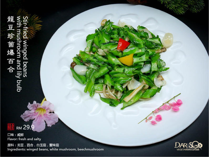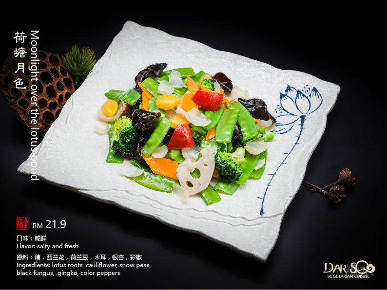 「大素無方素食餐厅」一楼温馨静雅,有美味营养的素食单品供您品鉴。 Dar Soo Vegetarian Cuisine is a Chinese vegetarian restaurant,. On the 1st floor, the various of finest quality vegetarian dishes are there for your comments.