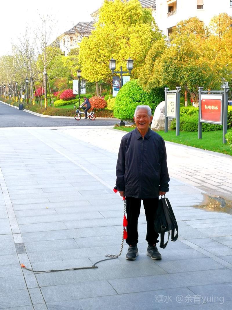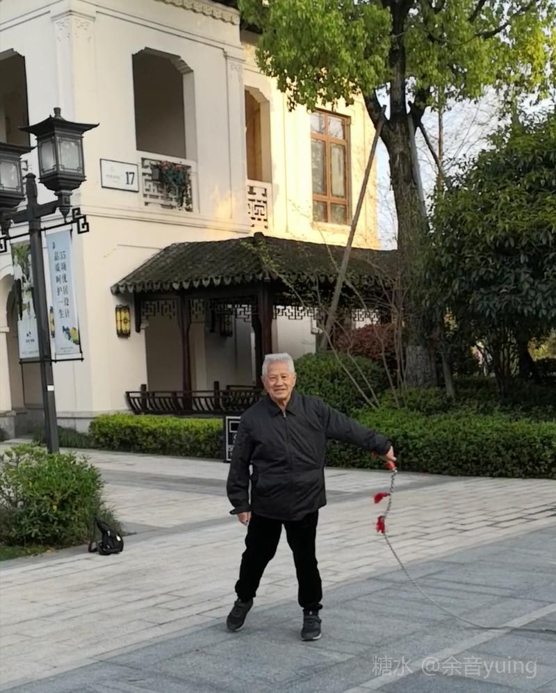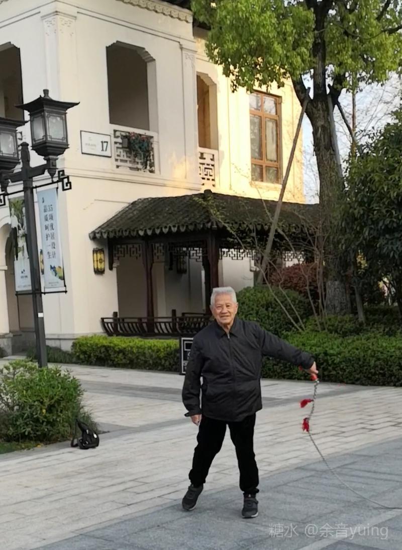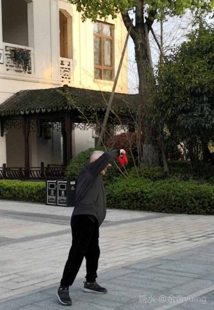 虽然今天气温骤降,室外在10度以下,老人衣着单薄,动作骄捷,看上去身体很健康。
