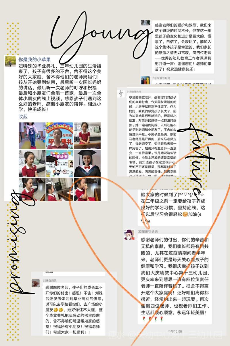 亲爱的孩子,你们在庆幼十三园演绎了美丽的梦想,你们在庆幼十三园学会了用自信去编织美好的未来。亲爱的孩子,无论你走多远,都是我们的牵挂。再见了,亲爱的孩子们!祝愿,所有的孩子都拥有最好的未来,前程似锦!❤❤❤ 永远爱你们的:钱老师、马老师、王老师、赵老师。