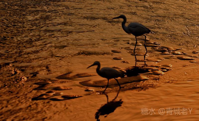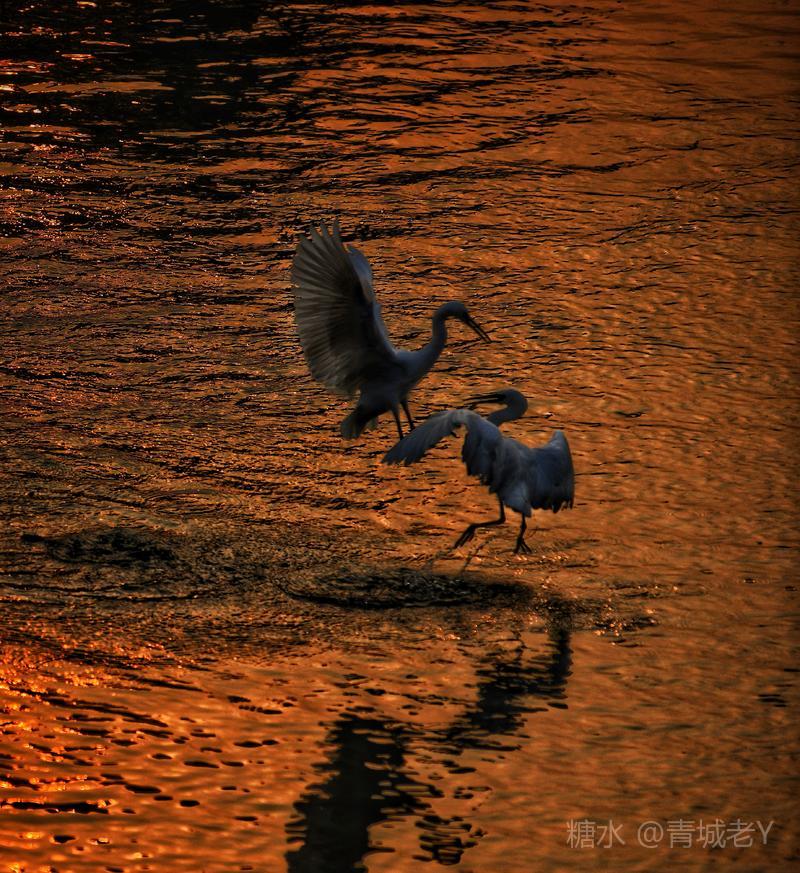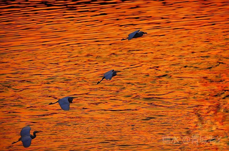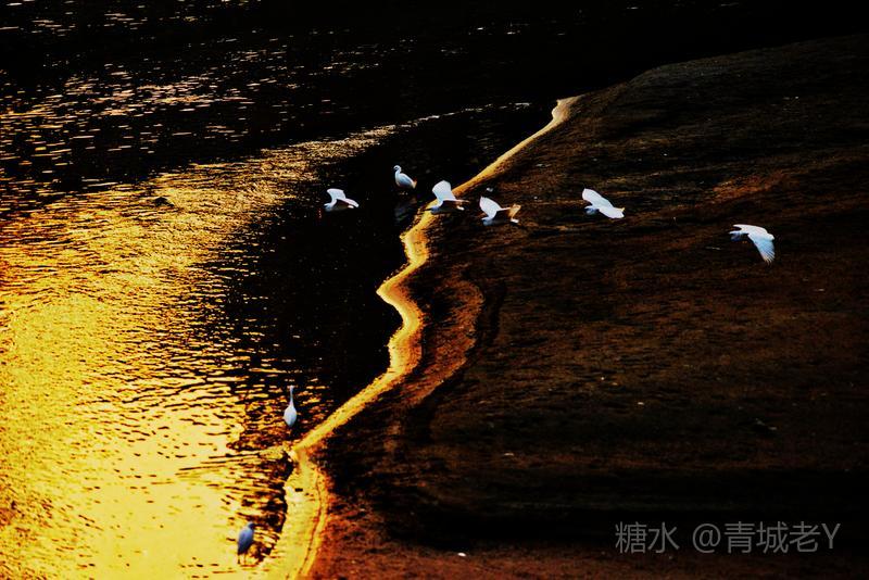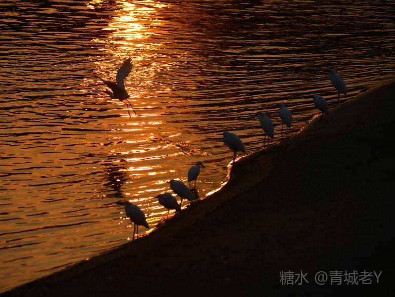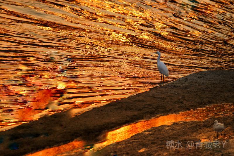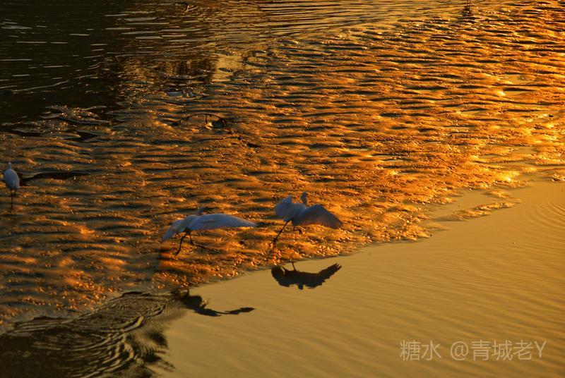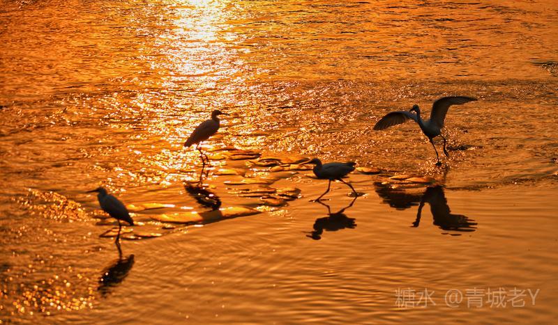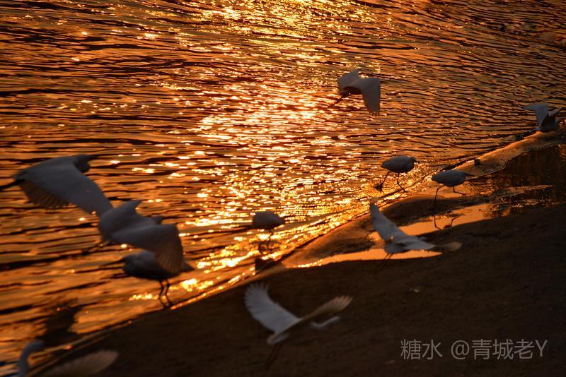 成都浣花溪畔,白鹭纷飞。一千多年前,唐代诗人杜甫客居在这里,写下了“两个黄鹂鸣翠柳,一行白鹭上青天"吟咏千古的诗篇。冬天的夕阳,光线格外柔和,我和老伴爱到望仙桥边看日落。这里正是清水河和锦江的交汇处,五点后,夕阳染红了江水、沙滩。落霞与白鹭齐飞,天水一色,美!