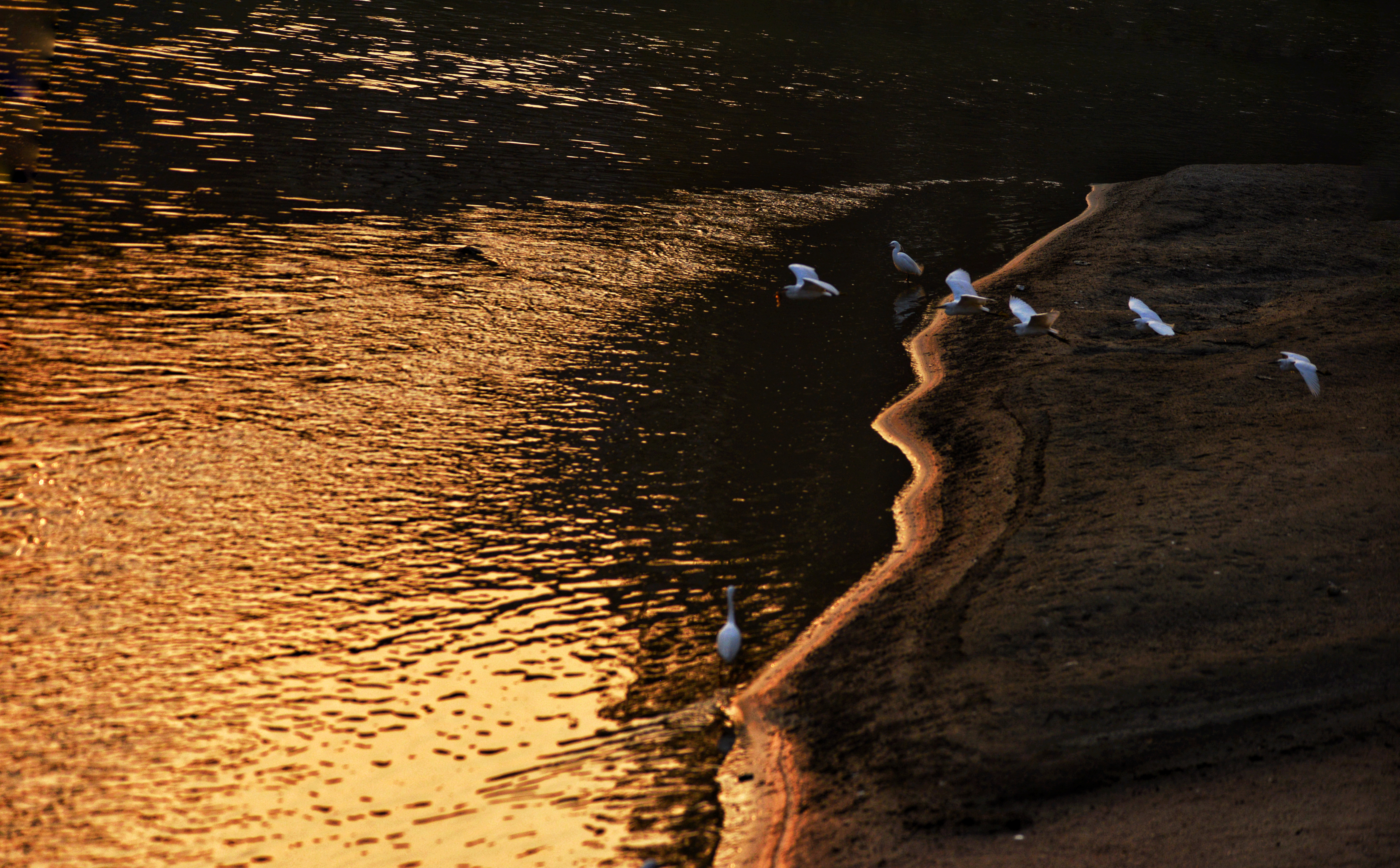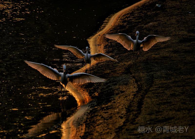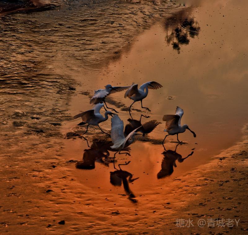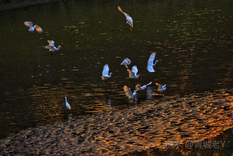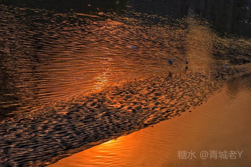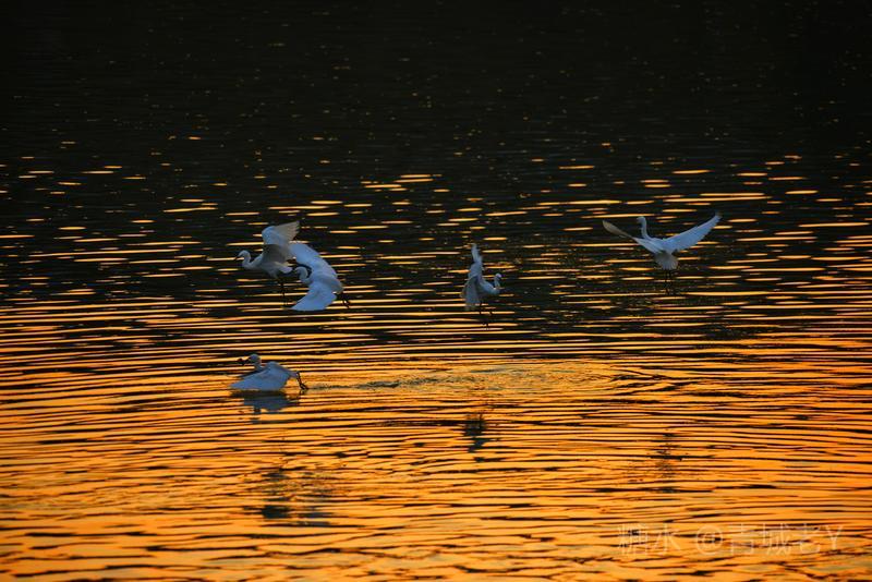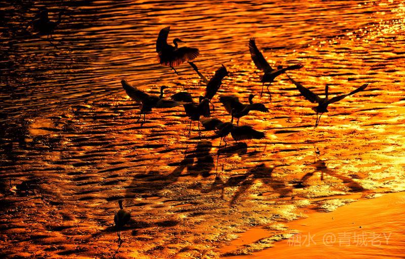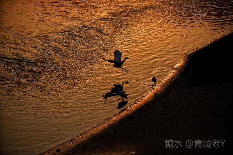 成都浣花溪畔,白鹭纷飞。一千多年前,唐代诗人杜甫客居在这里,写下了“两个黄鹂鸣翠柳,一行白鹭上青天"吟咏千古的诗篇。冬天的夕阳,光线格外柔和,我和老伴爱到望仙桥边看日落。这里正是清水河和锦江的交汇处,五点后,夕阳染红了江水、沙滩。落霞与白鹭齐飞,天水一色,美!