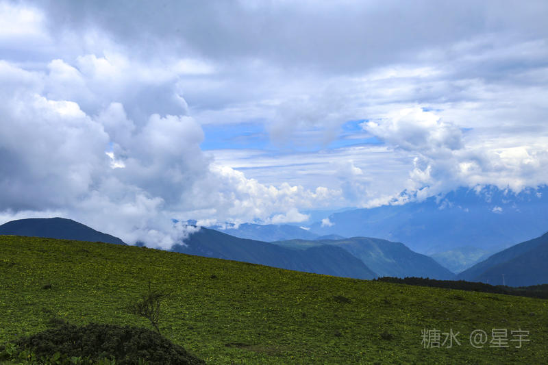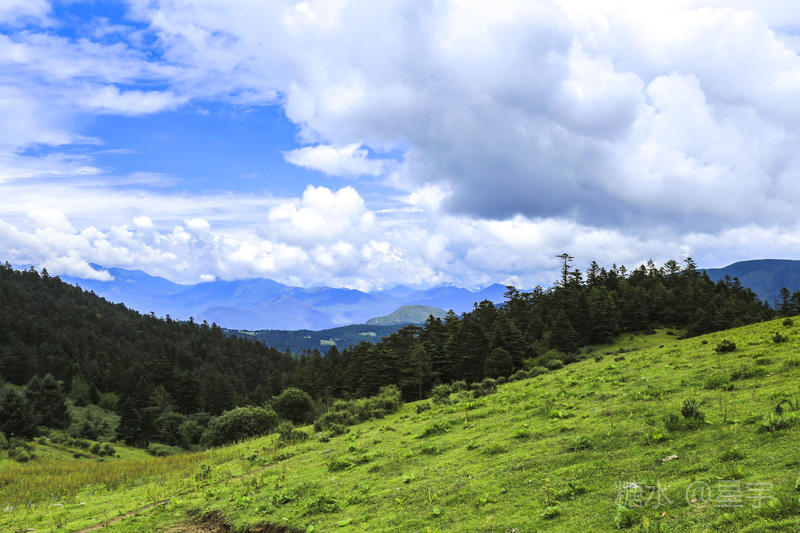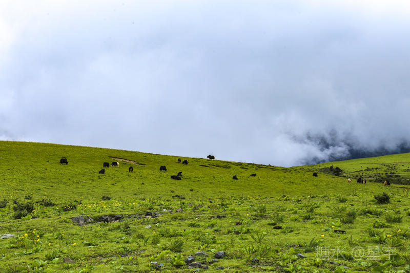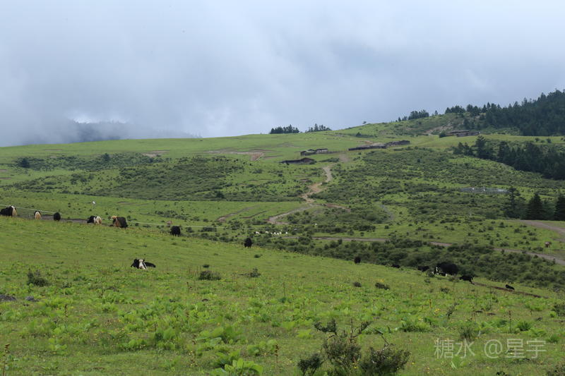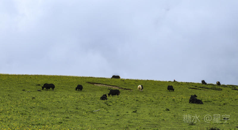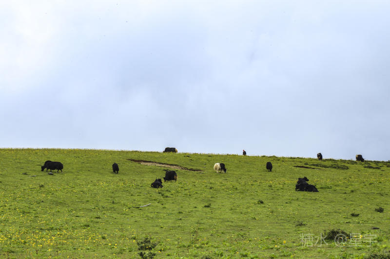 宽阔起伏的峡谷被绿草覆盖,牦牛在悠闲的吃草,如果说云杉坪是一幅美丽的山水画,牦牛坪就是一幅有着强烈层次感的油画。
