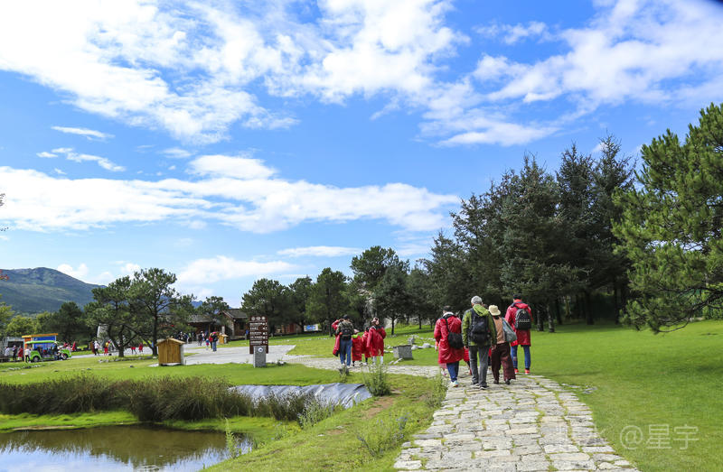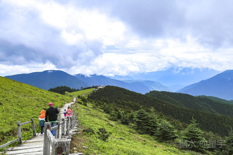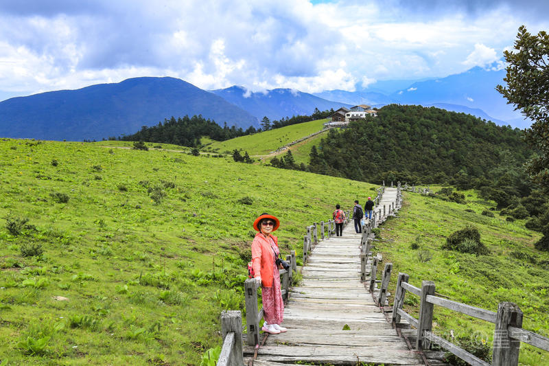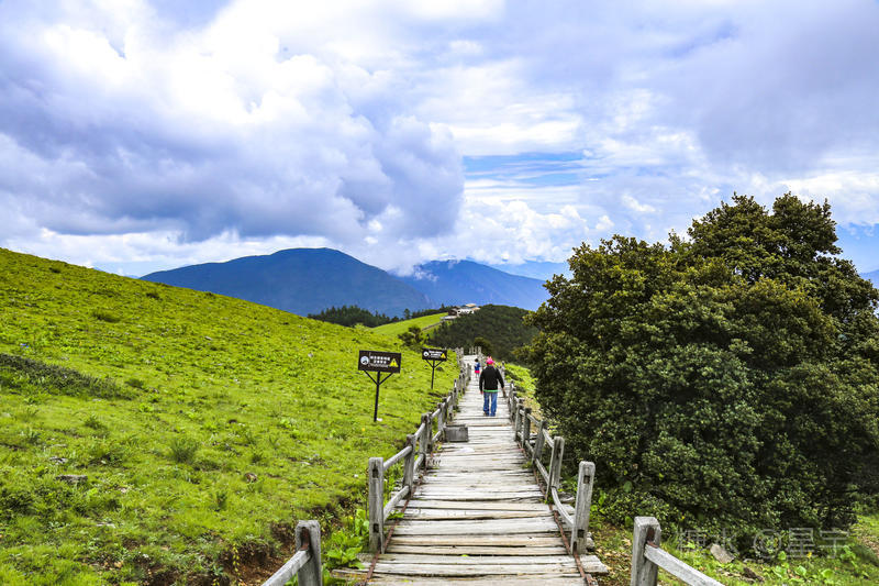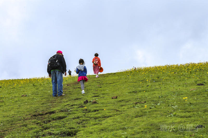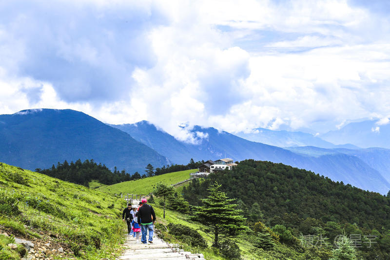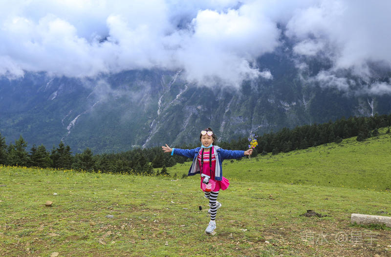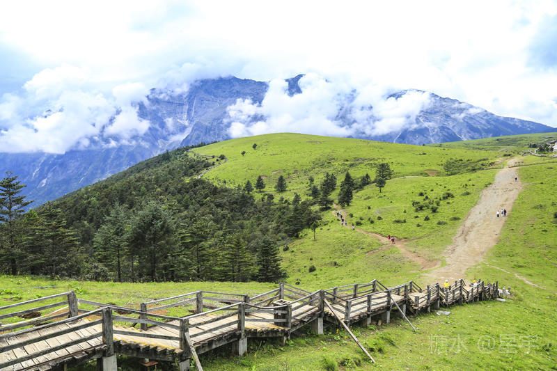 从观景台的木栈道可以走到草甸子,可以从草甸子一直往上爬到最高从草甸看玉龙雪山十三峰。也可以选择走绕草甸一周的木栈道蜿蜒上去,路线略远。我们从草甸子直接上去,坡度比较大毕竟海拔3800米上去比较累,但是也是一种勇于登攀的体验,七岁的董囡也是这样上去的算得登山小超人了。