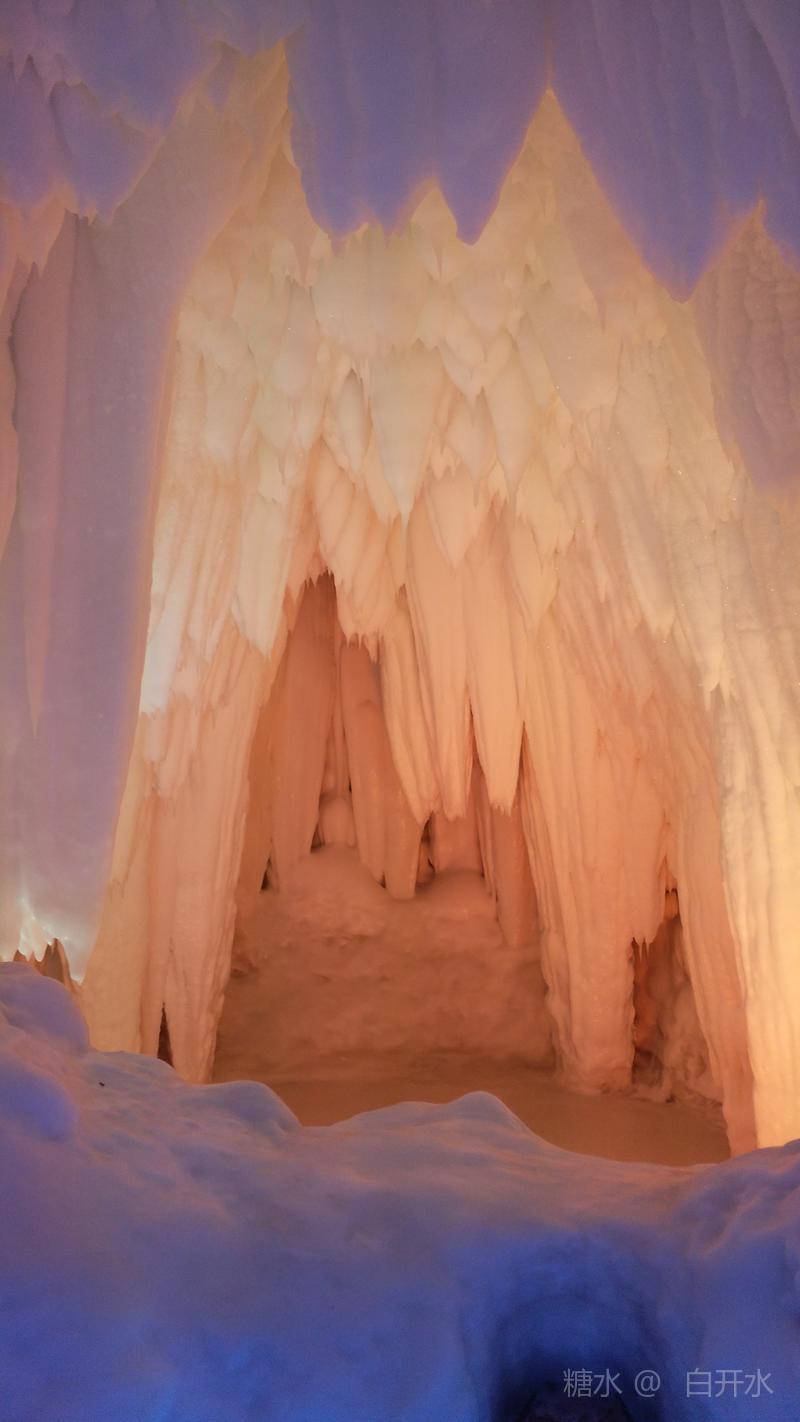 这里,一步一景,洞内大大小小的冰凌晶莹剔透,在五彩灯光的映照下显出梦幻般的景象,犹如龙宫御舍,无不令人惊叹,让人流连忘返!但是,太冷了,真舍不得走啊!