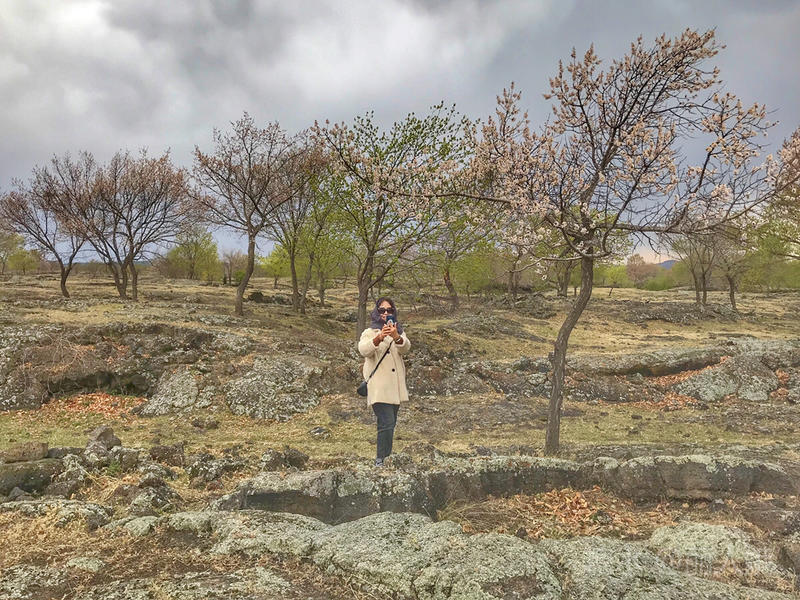 镜泊湖我和老公是在2020年“十一”国庆节去的,在没到景点瀑布之前公路两边有一朵朵的小树很大一片,长在熔岩台地上有红色有的黄色叶子很是漂亮,听说在春暖花开的时候一片的杏花在这里开放好看极了,于是2021年5月1号和老公自驾来到了这里,很可惜来晚了花基本落掉了,天还下着小雨,顶着雨拍了几张然后坐在车里,等雨停了又下了拍了一会,不甘心离开,但是隐约花的痕迹还是有的真的很漂亮。下面的图片随意拍的,谢谢友友们的关注,友友说没有文字,呵呵😄那我就把文字补给友友们分享。