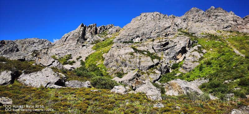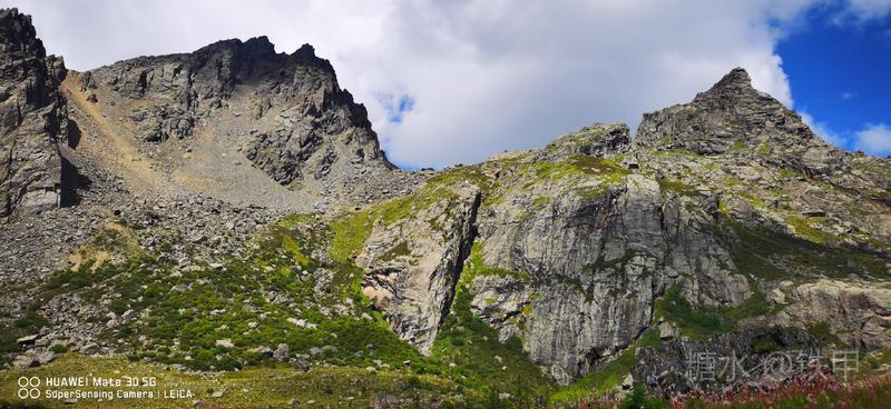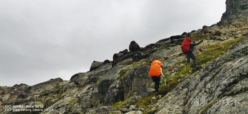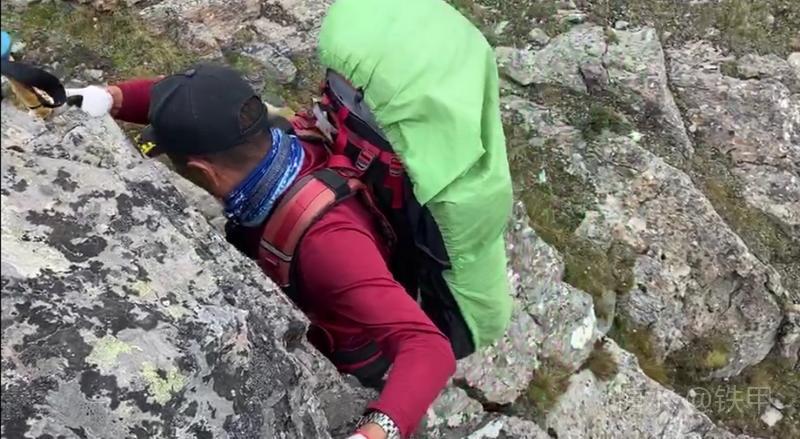 D6:早早拔营出发起步就是很陡的爬升,垭口全是巨石,没有路迹,需要自己根据地形判断,不过跟着轨迹走问题不大,今天任务比较重,连续扎营不是下雨就是暴晒,每天晚上帐篷里外湿乎乎,走出大山比较急切。