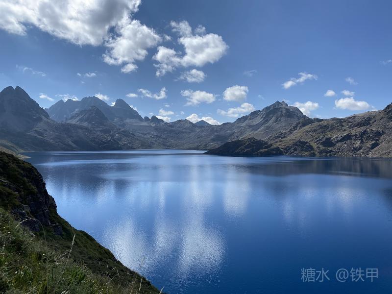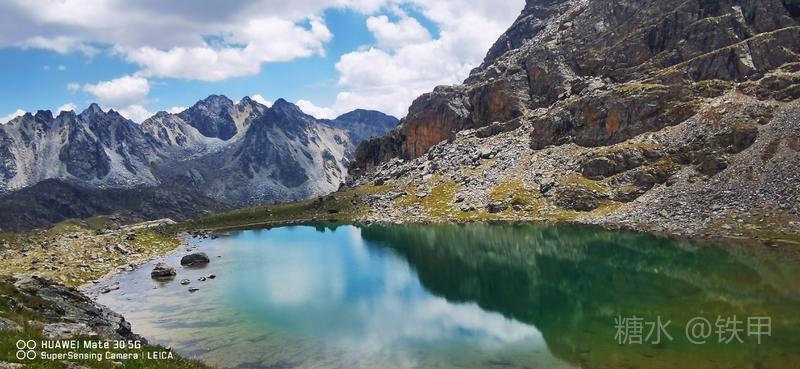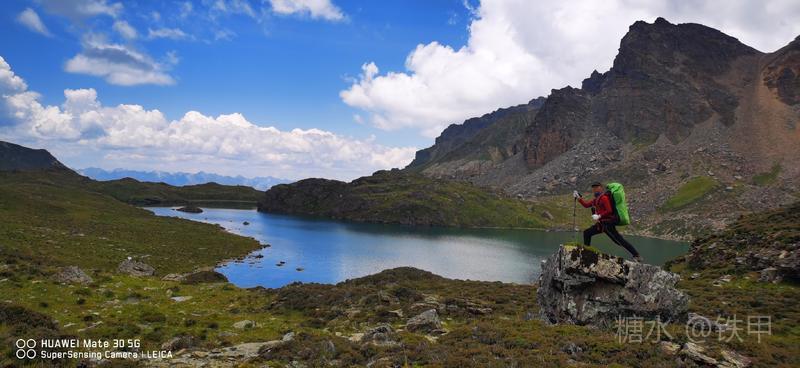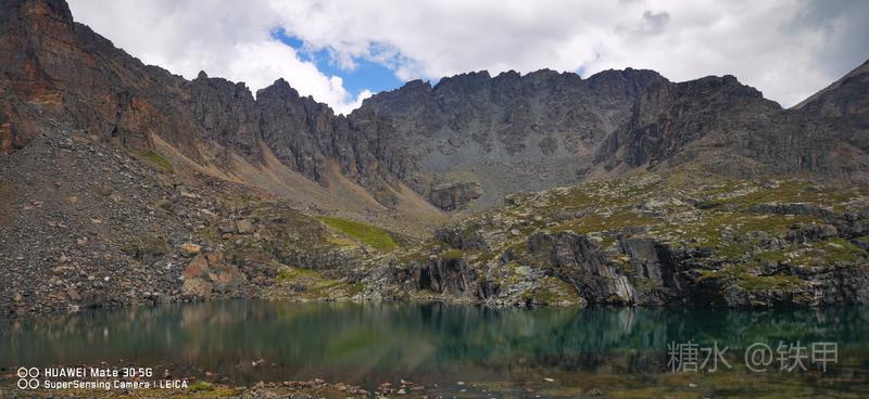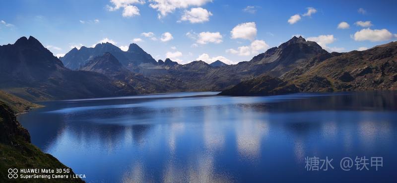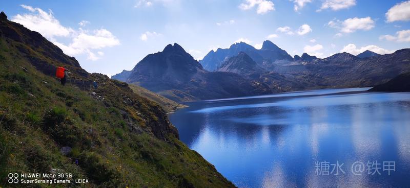 往上攀了几十米,又出现一个新的海子,比相丘曲格措颜色要深,湖面像镜子一样。