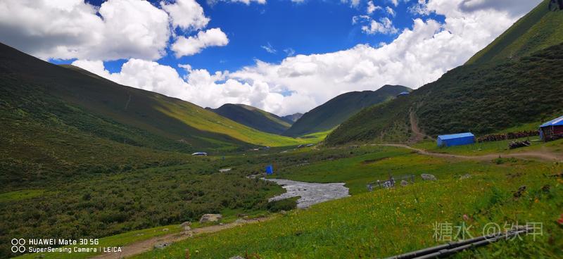 第一天徒步于高原牧区,难度中上,视野开阔,除过几个垭口碎石坡难走之外,满眼清清的绿、风吹草低见牛羊,有山有水有草原,有花有人有故事,对于户外来说如同过大年