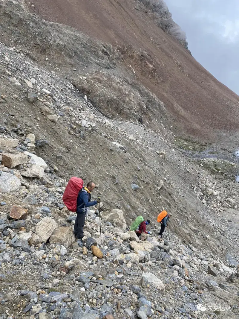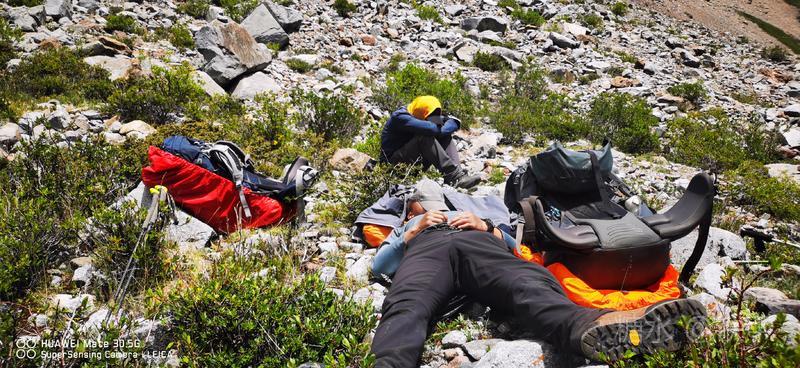 D3:拔营不到20米开始爬升,从4000营地爬升-4850-然后4130 米扎营,错过了一公里左右营地,向前赶了会路,越走沟越深到了沟底最深处开始上山,半山随便找了点地方扎营
