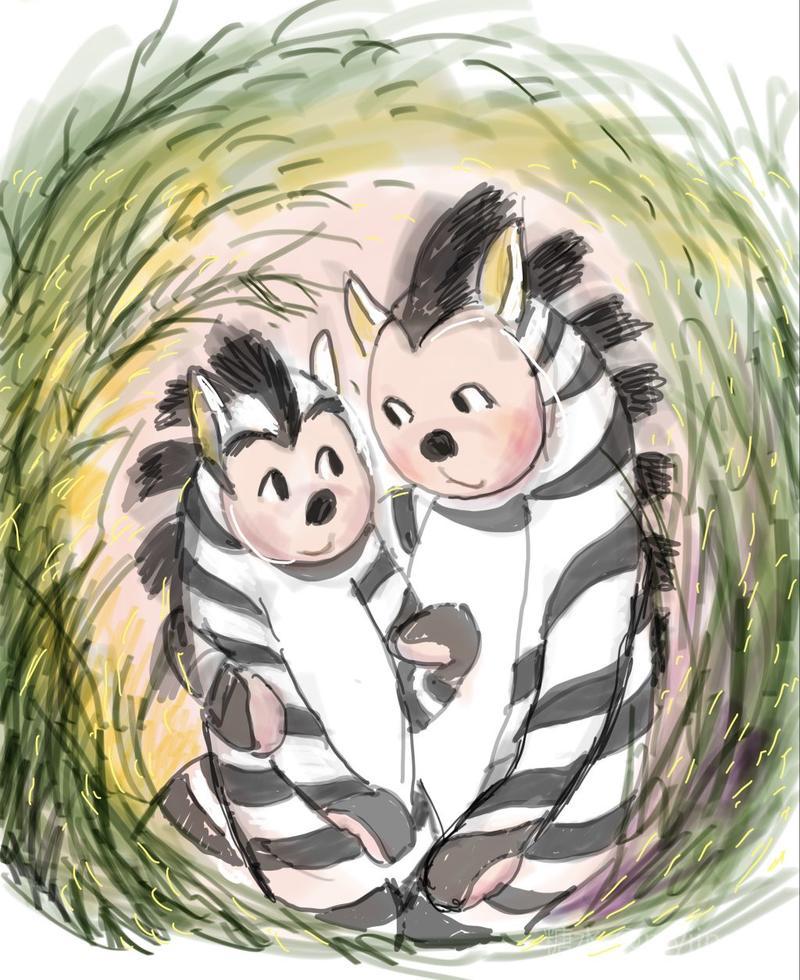 “希希真是太瘦弱了。”旁边有斑马这么说。“恩恩就很健壮嘛。”“加加跑得很快。”斑马们七嘴八舌地说起来。看着蜷缩在脚边的孩子,希希妈妈并没有发表什么看法,只是爱怜地为孩子祷告:“全能的造物主,求你看顾希希,帮助它在队伍出发之前,快速恢复体力。”