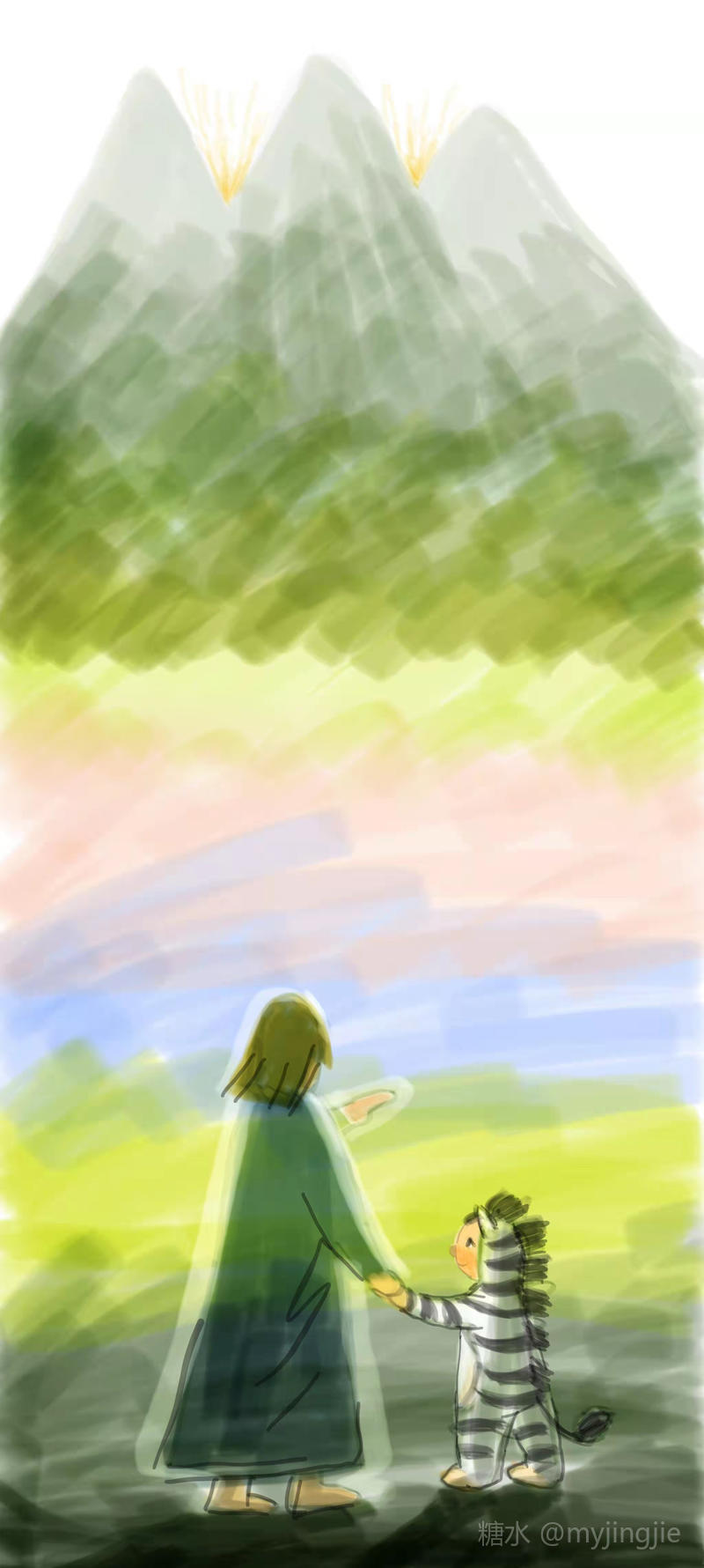 “啊,真的吗?它们不害怕吗?”妈妈没有理会希希的问题,继续说道:“那是在造物主的园子里,祂的家最安全。后来很多代很多代之后,不知道为什么,斑马们再也找不到造物主的家。我们迷路了,只好每年这样迁徙,走来走去。再后来,造物主派祂的儿子来找我们,带我们回到父亲的园子。现在你已经足够大了,大到可以听这个故事。”