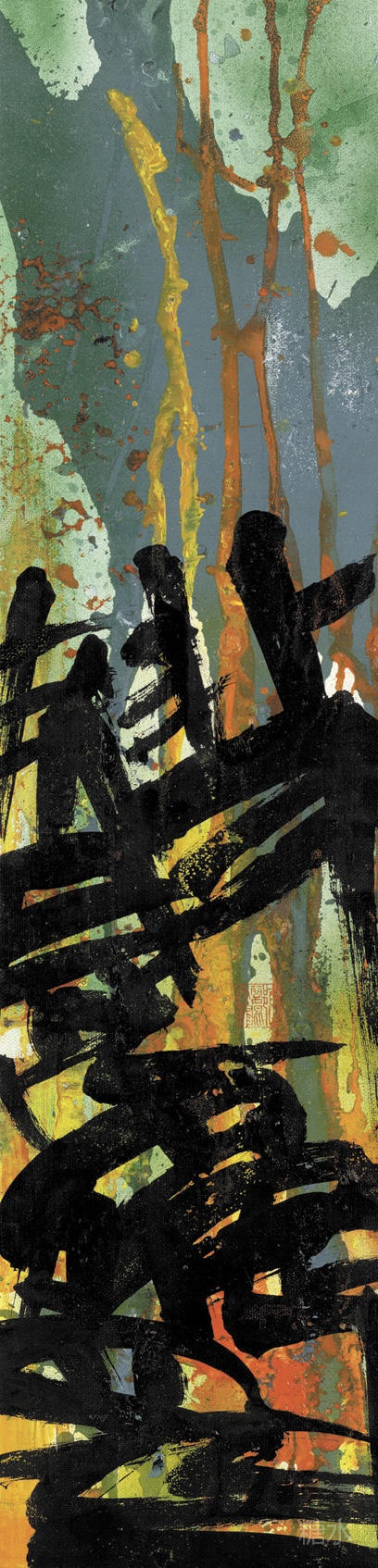 陶广平(浙音古典音乐收藏馆馆长) 郦文龙的作品就如听协奏曲和交响曲,极具能量感和爆棚感!作品呈现粗犷、先锋、前卫、激越,恣纵的汉字艺术给人酣畅淋漓、金戈铁马、热情洋溢的感受。然而先锋源于传统,郦文龙先生从事汉字艺术研究数十年,章草、甲骨、金文、大小篆、简牍、碑版、行楷,乃至云篆都研究,他的作品是在具有传统学术性很强的基础上突破、突围和飞跃,个性强烈、中西兼容,打破了一般书法的泥古之风和重重束缚,穿越了东西方艺术的时空长廊,重塑了传统书法图象化的价值体系,具有强烈的视觉冲击力和焕然一新的当代气息。能量感十足,创新性极强!