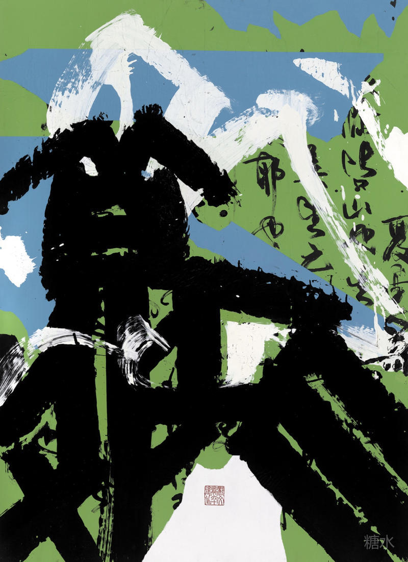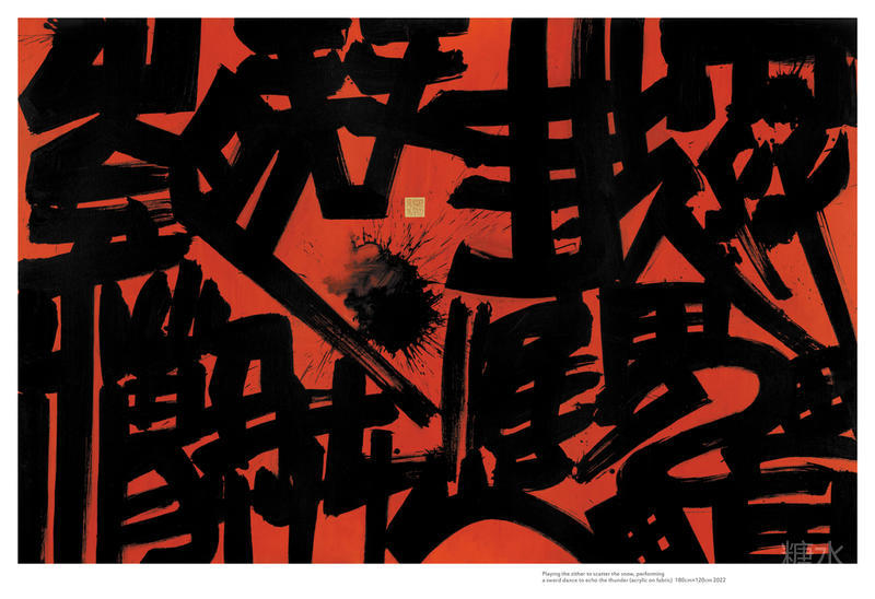 鼓琴散雪 荡剑应雷(布面丙烯)180cm×120cm(2022) Playing the zither to scatter the snow, performing a sword dance to echo the thunder (acrylic on fabric) 180cm×120cm(2022)