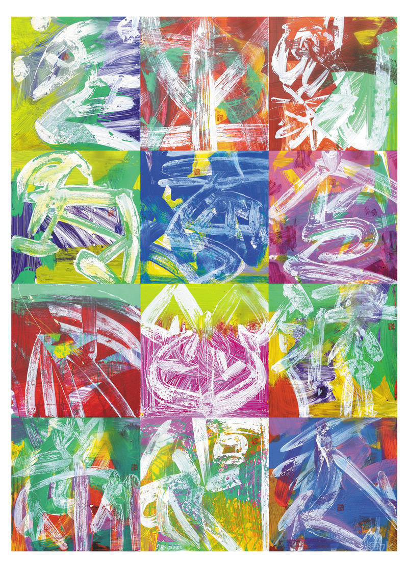 百寿图180cm×240cm(纸面丙烯)(2022) Hundred Longevity Chart 180×240cm (acrylic on paper)(2022)