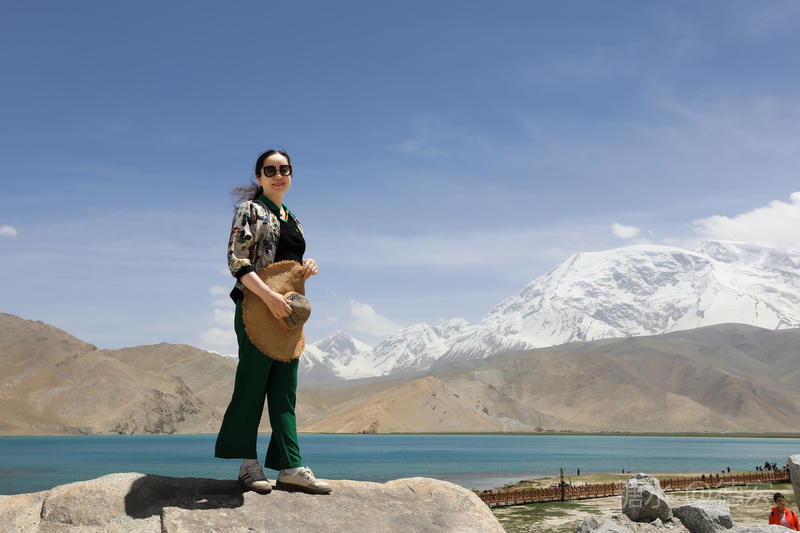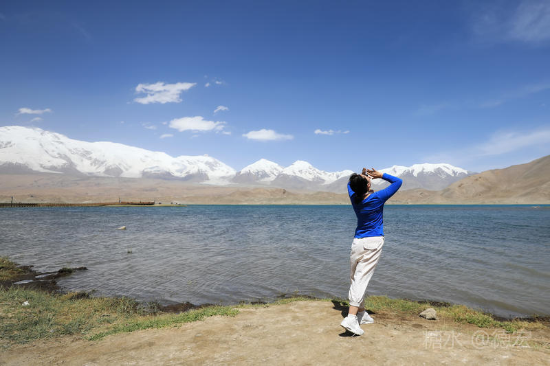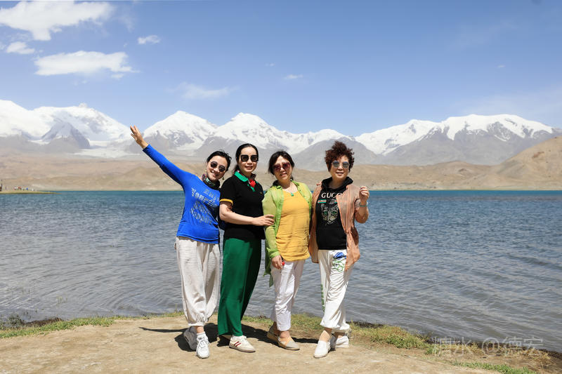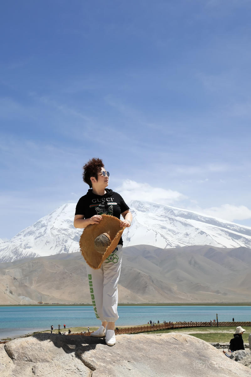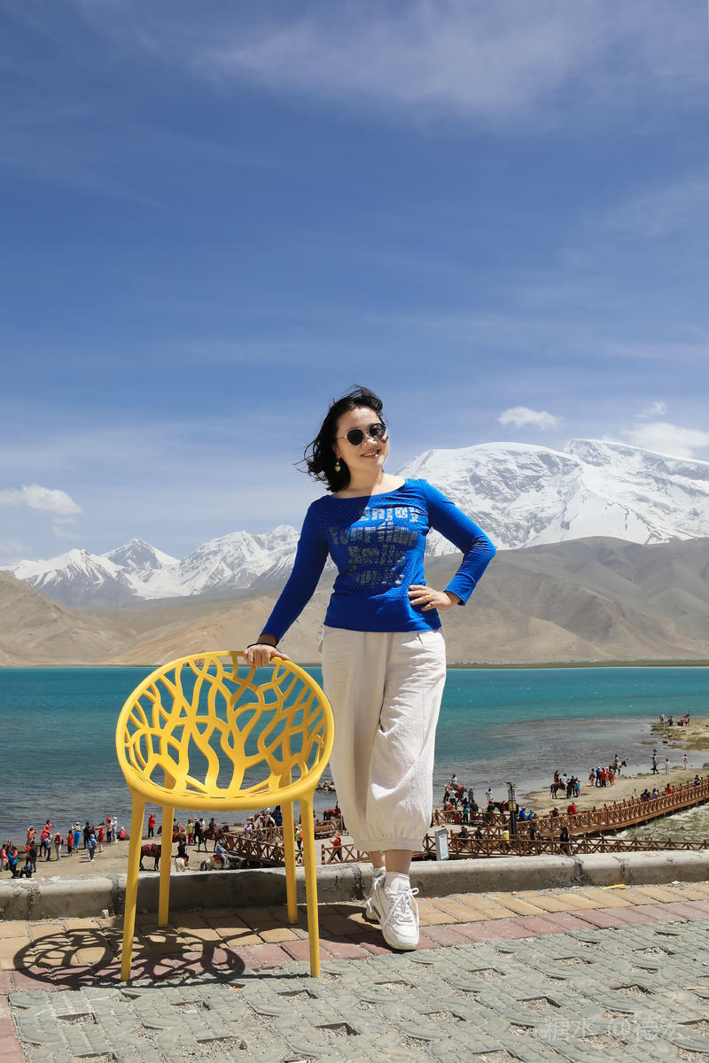 可能是因为白沙湖景区“下土”的原因吧,所有的游客齐聚这里,呼朋引伴,喧闹无比。我们没有选择第一时间下到湖边,而是寻一块高地让自己融化进白雪皑皑的慕士塔格峰里。