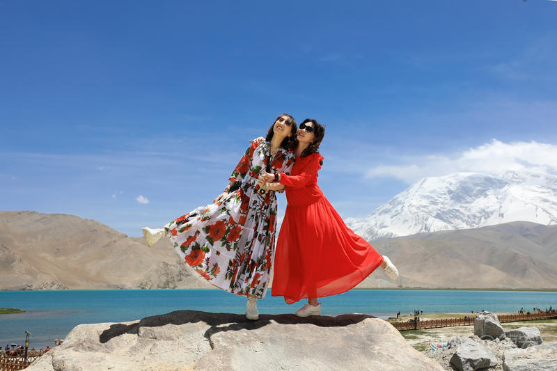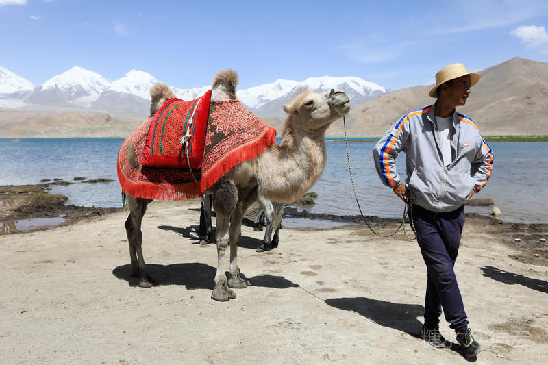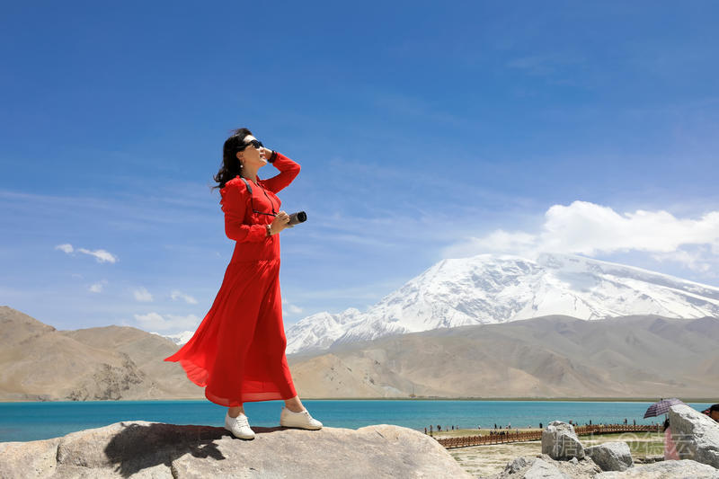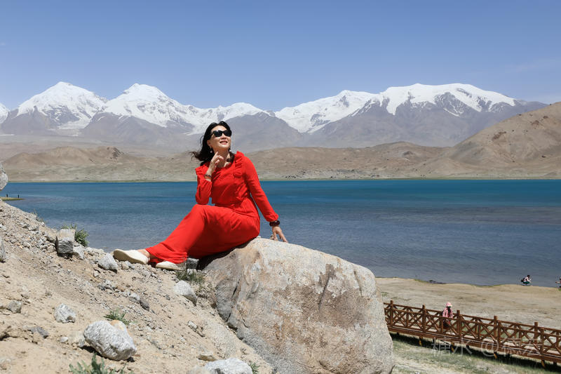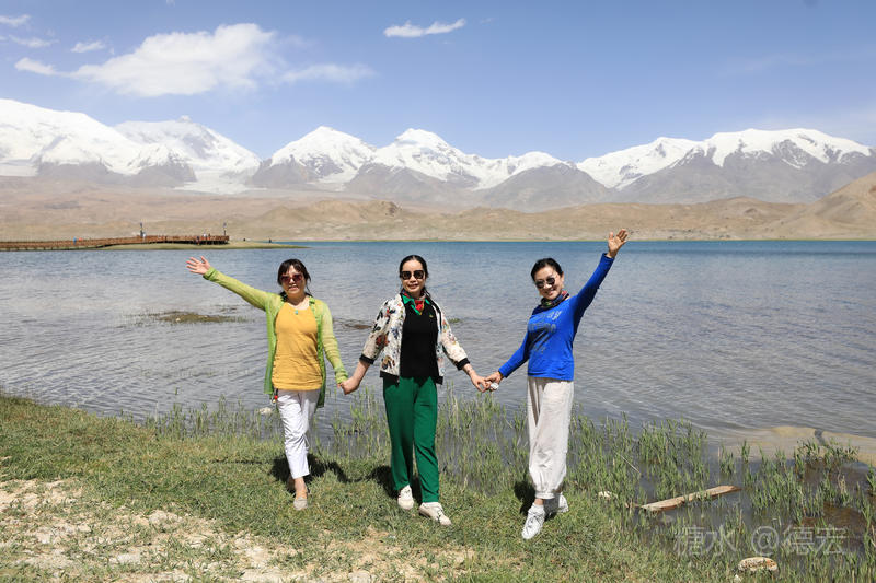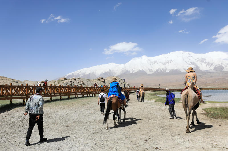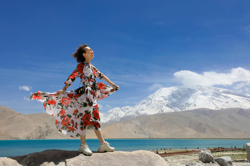 可能是因为白沙湖景区“下土”的原因吧,所有的游客齐聚这里,呼朋引伴,喧闹无比。我们没有选择第一时间下到湖边,而是寻一块高地让自己融化进白雪皑皑的慕士塔格峰里。